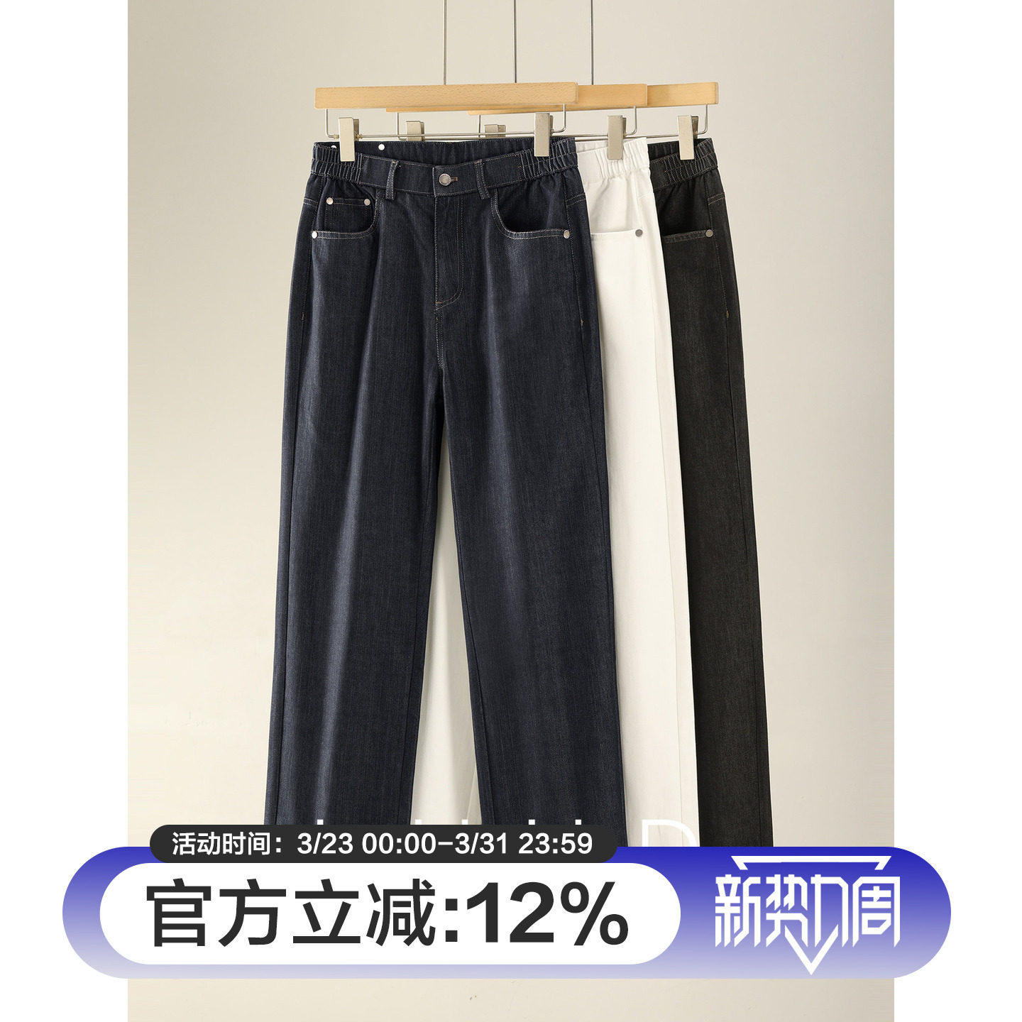 男柔软舒适莱赛尔天丝半松紧腰休闲裤 特价 复古垂感辑明线牛仔裤