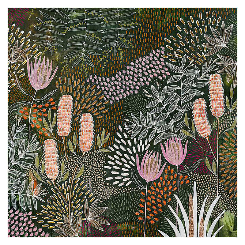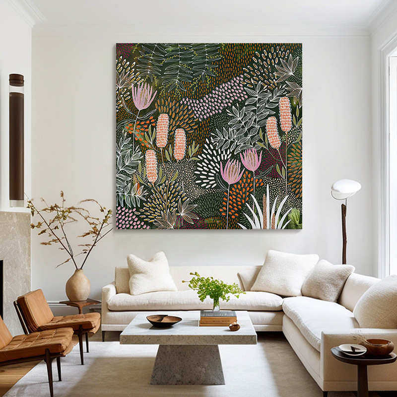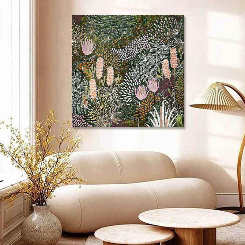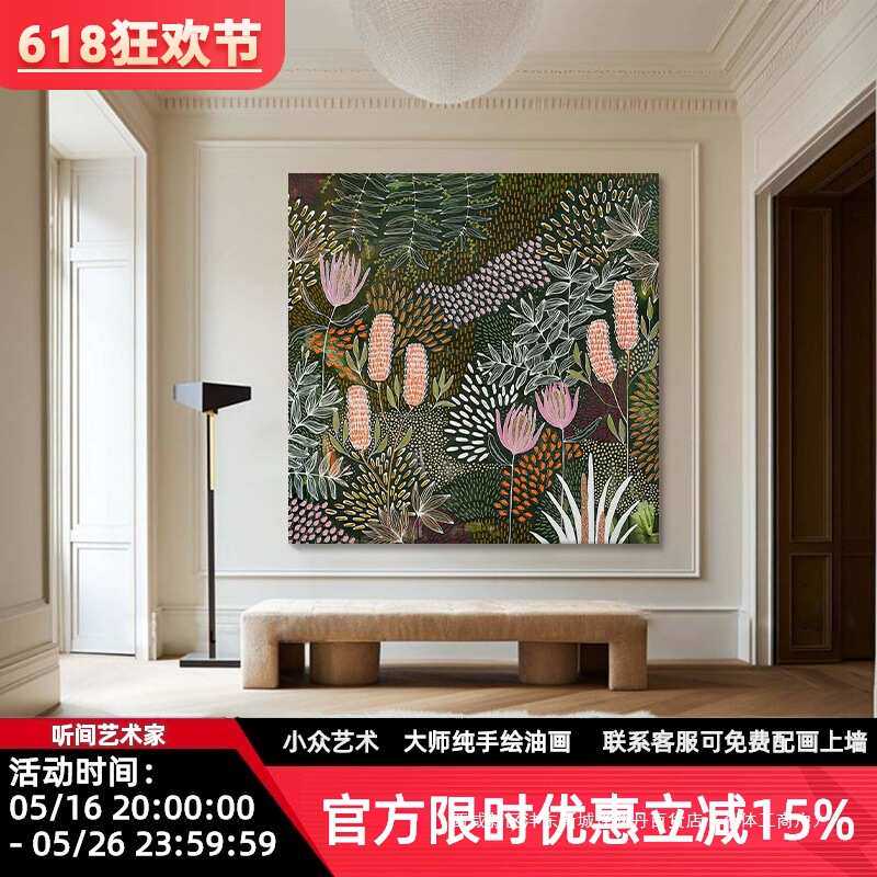 中古风抽象绿植手绘油画花卉丛林客厅装 饰画小众艺术餐厅玄关挂画
