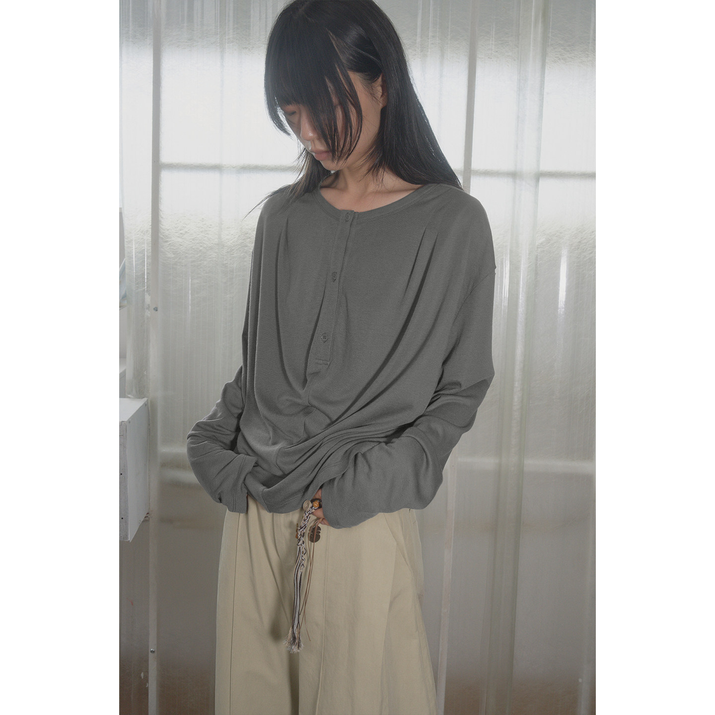 小衫 Veega 长袖 莱赛尔绵羊毛混纺简约立体褶量宽松版 Chic