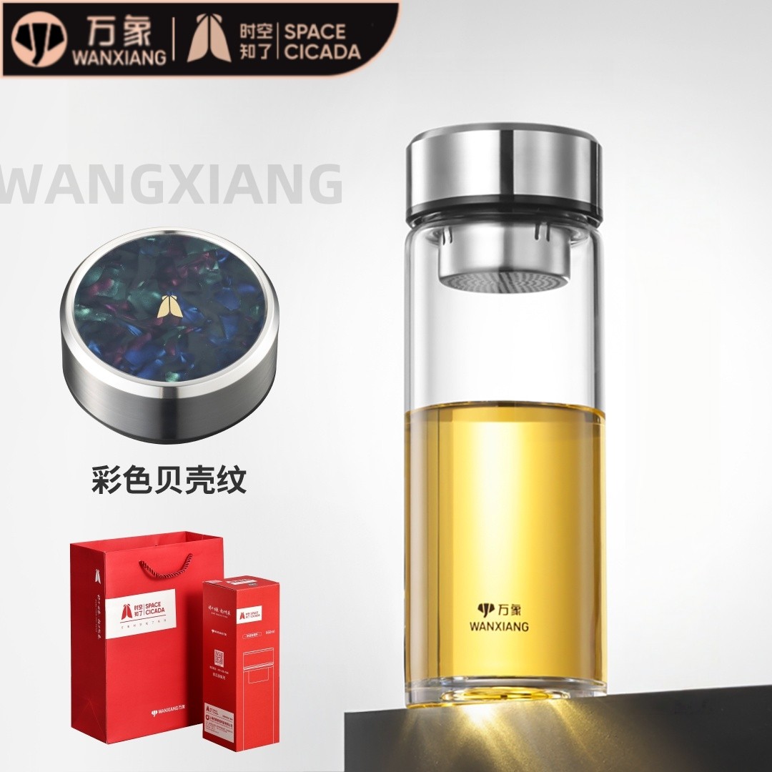 显温双层玻璃杯带把手大容量办公泡茶家用水杯男女带手柄隔热防烫