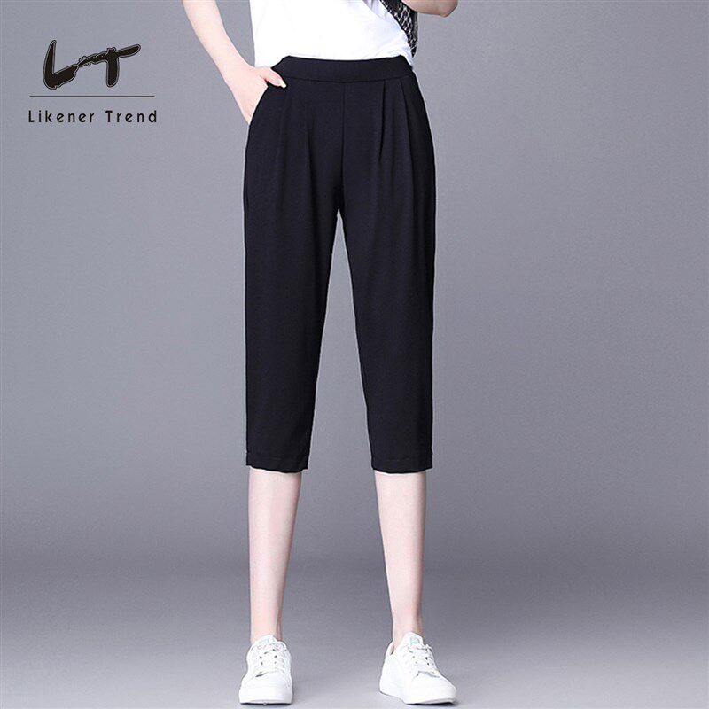 薄款 夏季 宽松裤 子女冰丝休闲大码 潮 LT哈伦裤 百搭七分裤 女2021新款