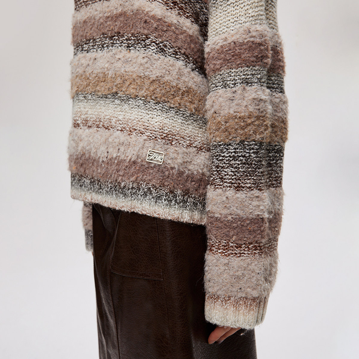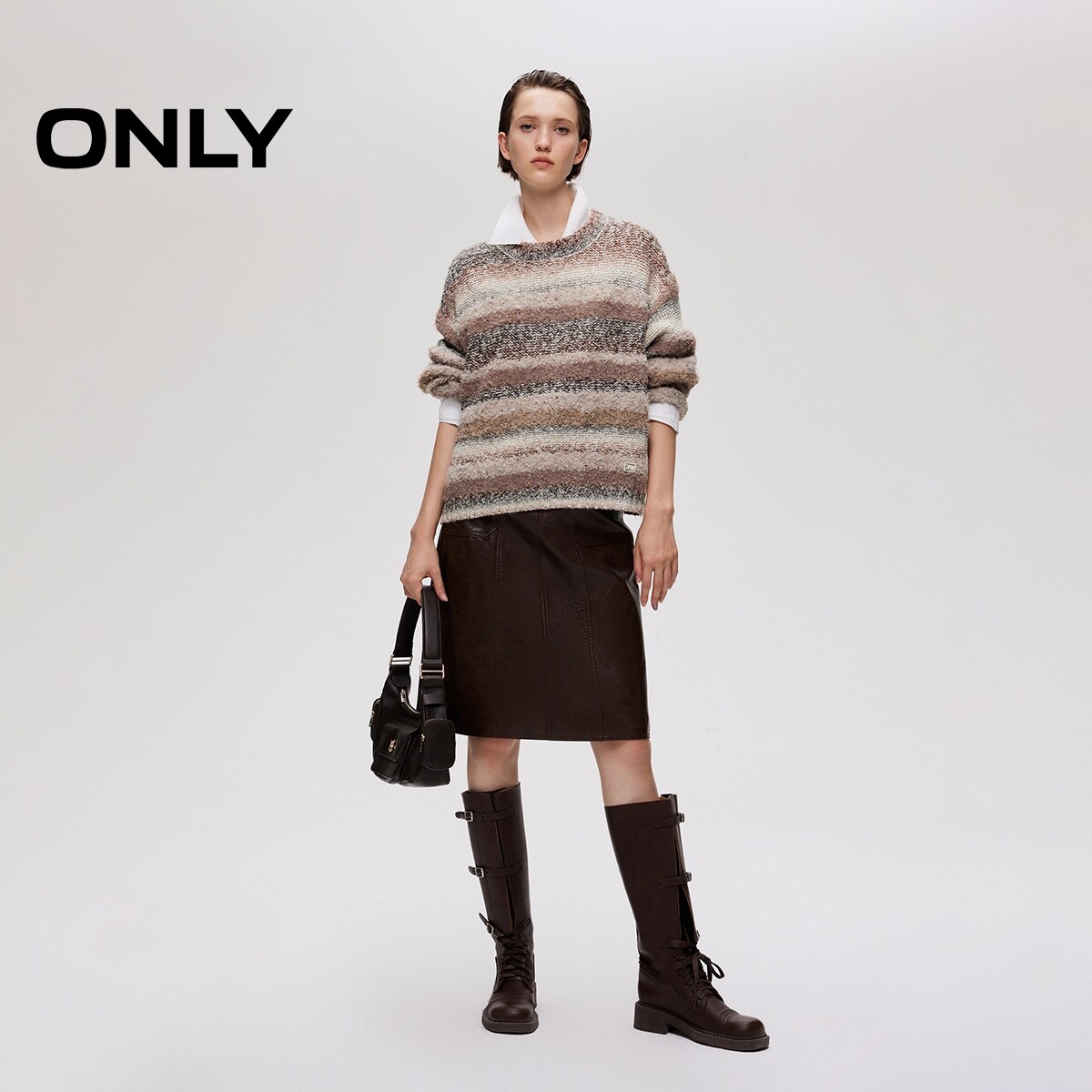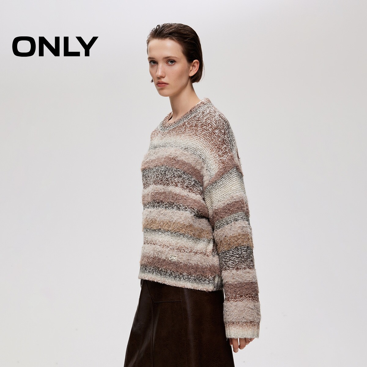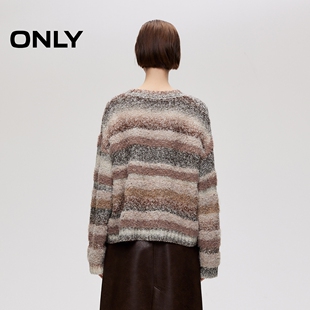 渐变晕染条纹百搭圆领宽松落肩针织衫 个性 女 新款 ONLY2026春季