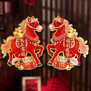 2026马年门贴卡通立体生肖门贴春节过年年画新年用品福字对联窗花