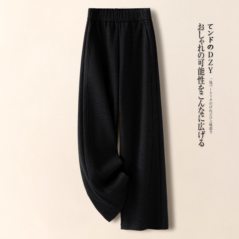 加厚宽松加绒羊毛呢直筒裤 九分裤 女秋冬2025新款 米白色羊绒阔腿裤