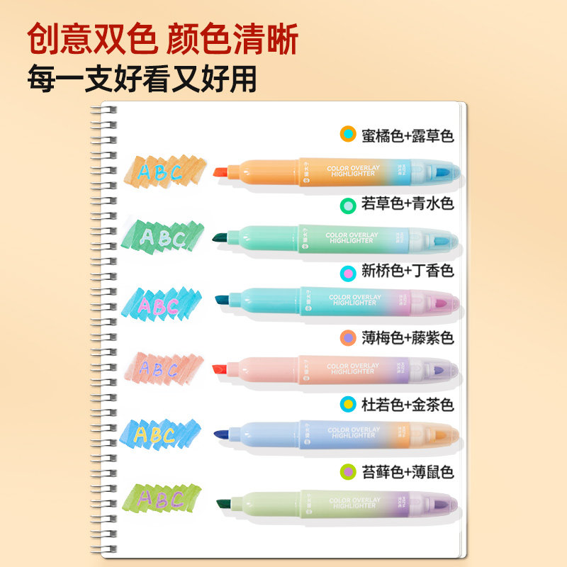 猫太子荧光笔可叠色小学生专用划重点记号笔彩色初中生专用双头重点标记笔高颜值儿童无毒护眼文具做笔记专用