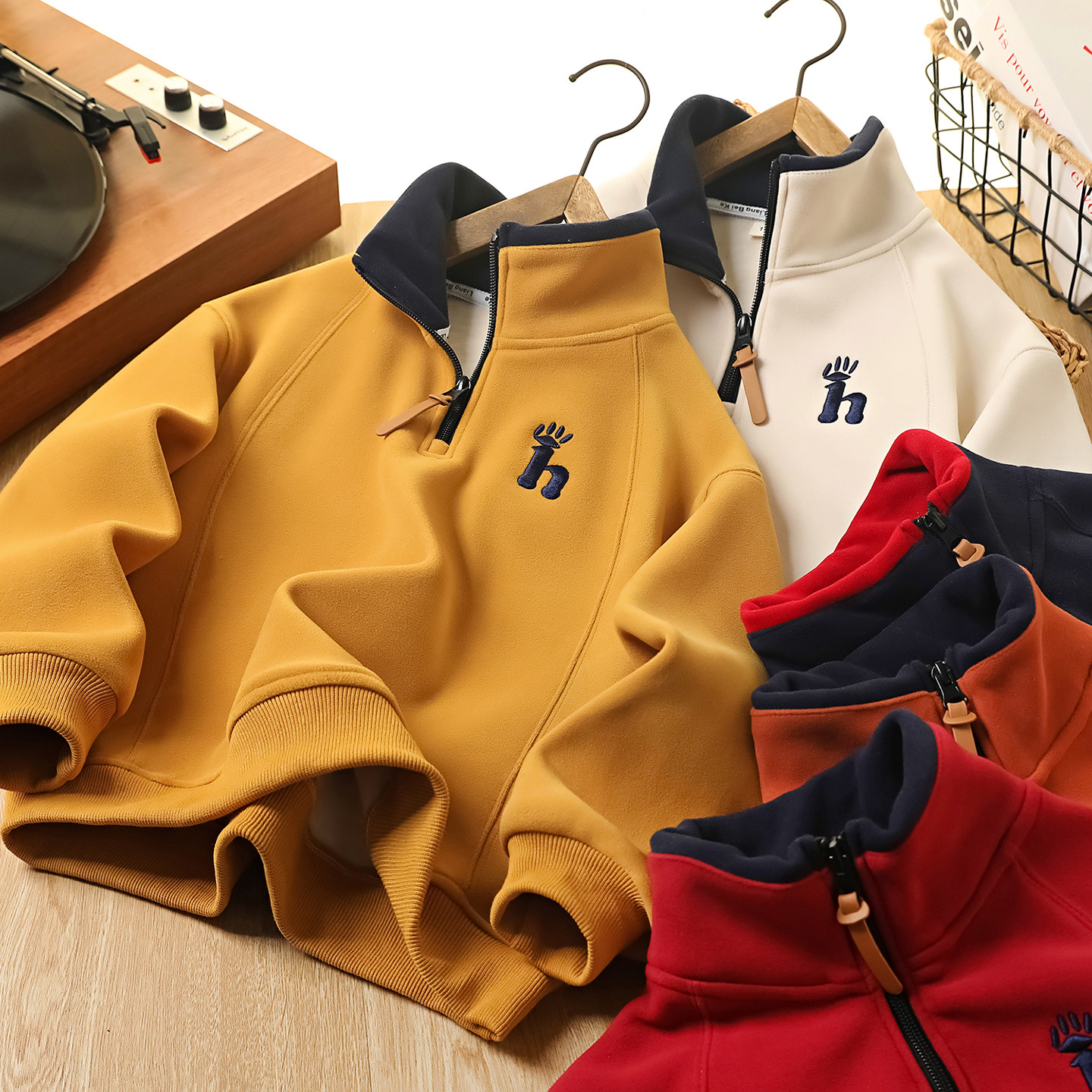 衫 男童加绒卫衣秋冬2025新款 儿童立领加厚上衣中大童帅气保暖长袖
