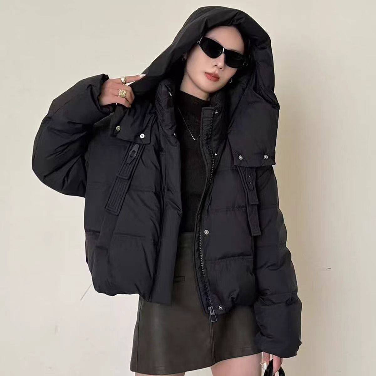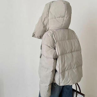23655抗寒连帽羽绒服欧版 休闲加厚保暖白鸭绒双扣飘带面包服外套