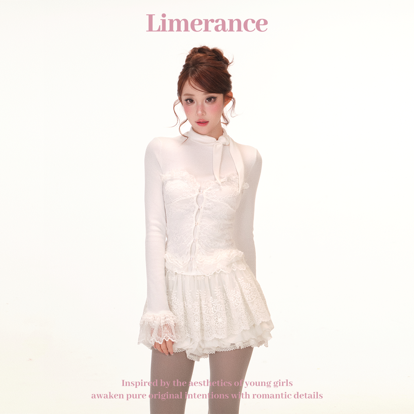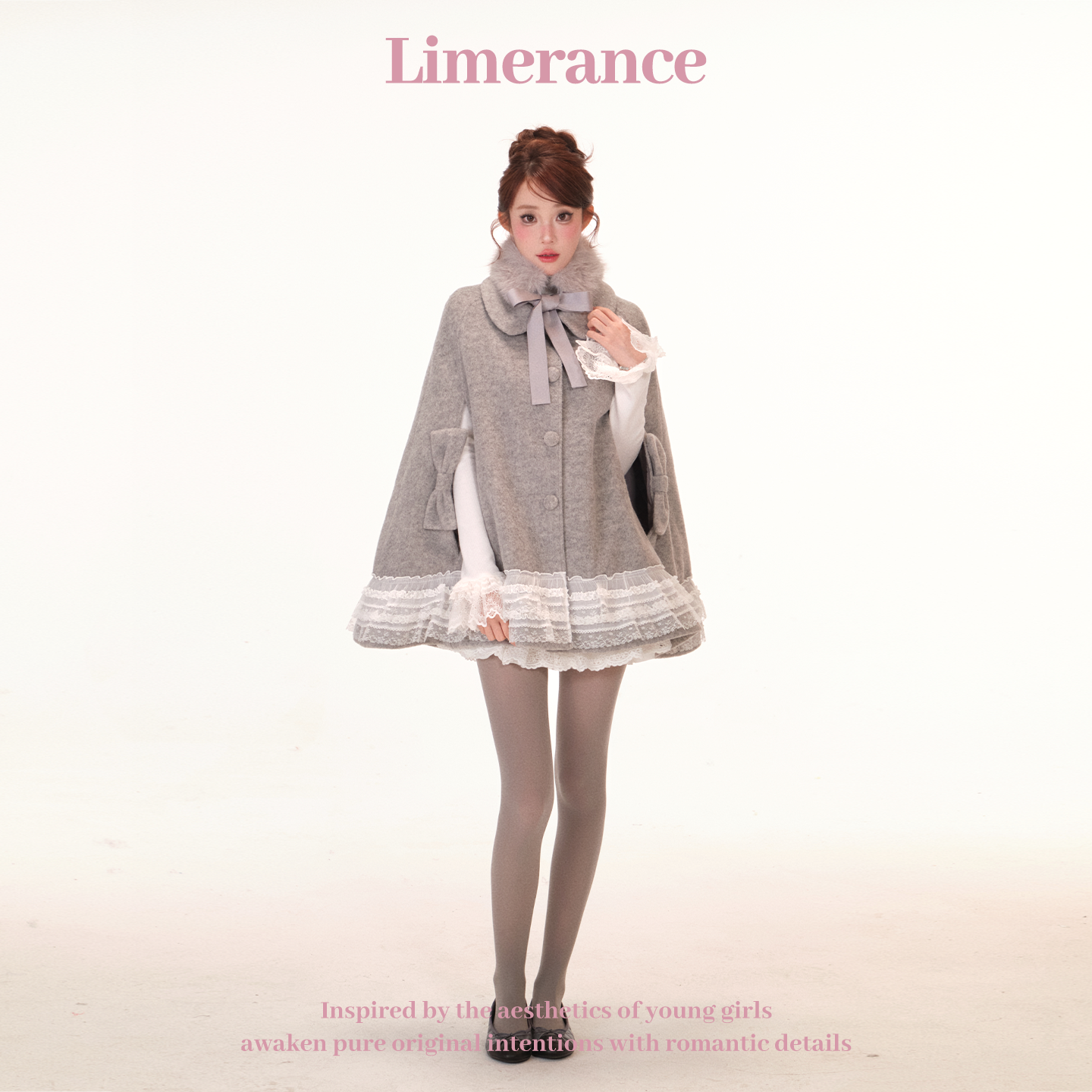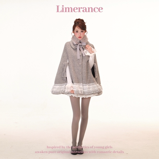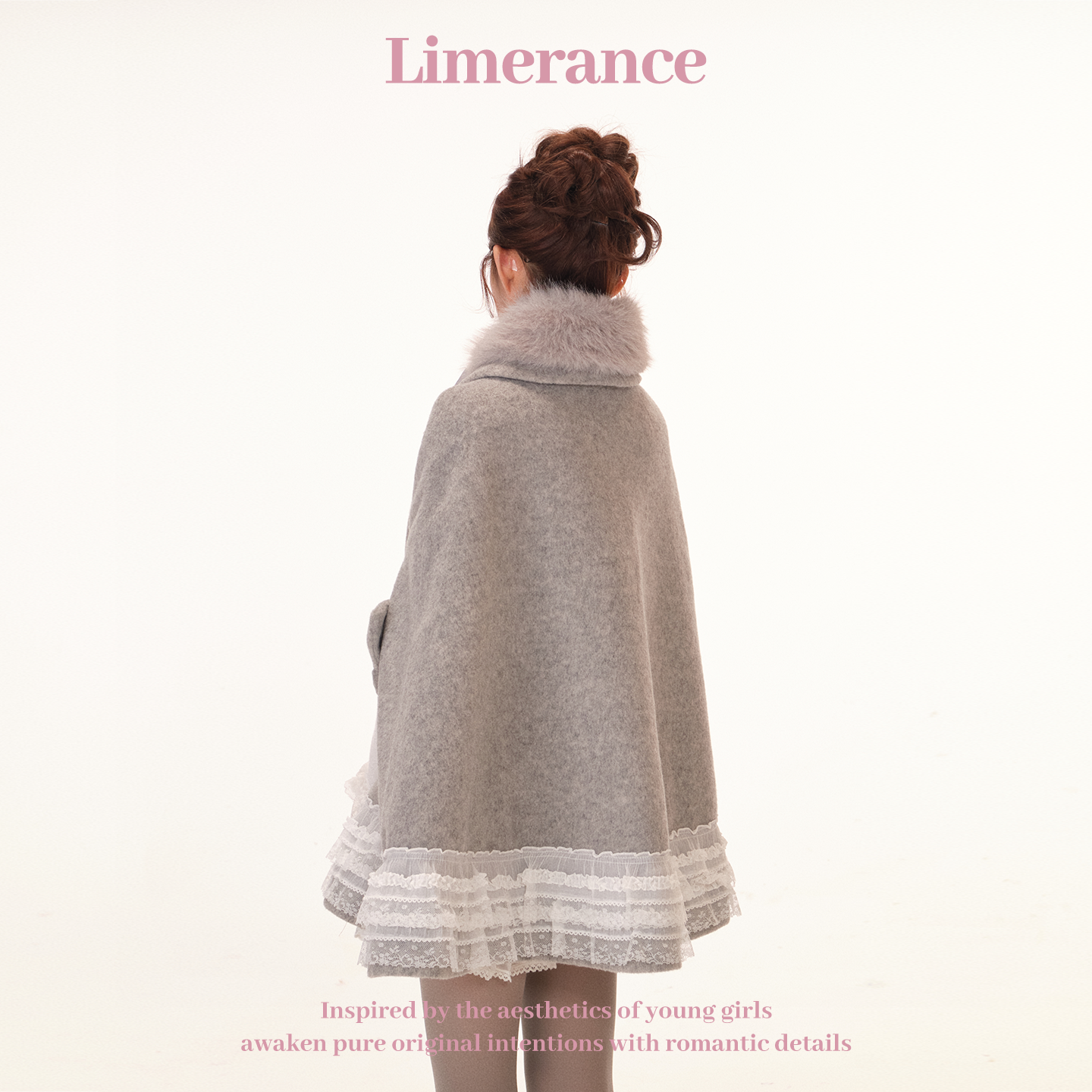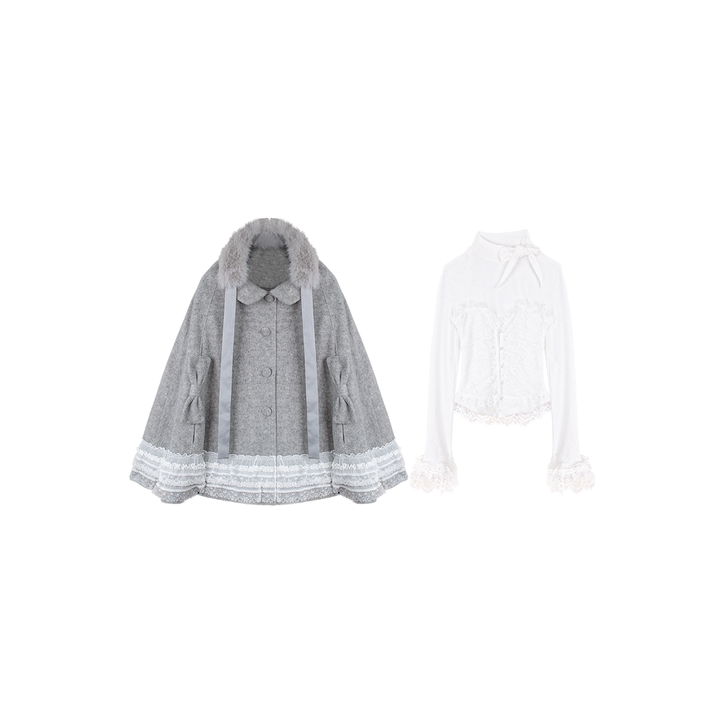麦瑟尔小姐 毛毛围脖冬 斗篷大衣重工蕾丝花边加绒假两件打底套装