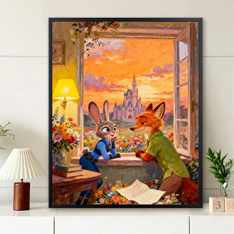 疯狂动物城数字油画diy填涂色手工绘治愈系浪漫情侣油彩装 饰挂画