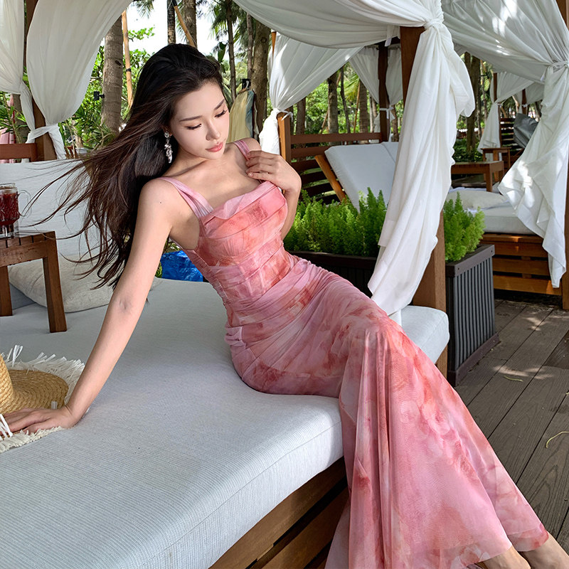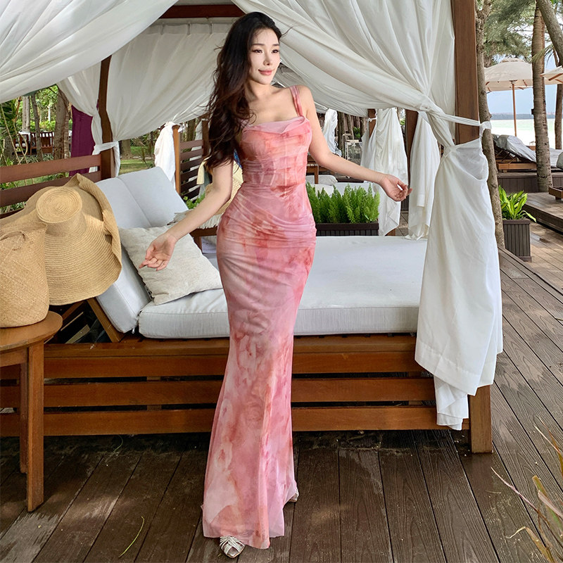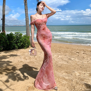 Ariel一字肩褶皱晕染修身 Luck 包臀连衣裙 Sheer 蓝盈莹同款