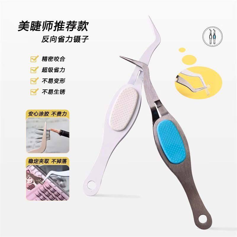 新款 X型省力镊子反向假睫毛嫁接手账手工美甲塑性夹子diy网红通用