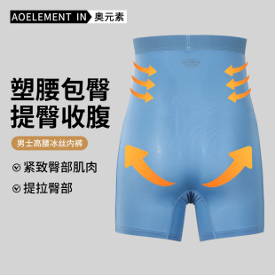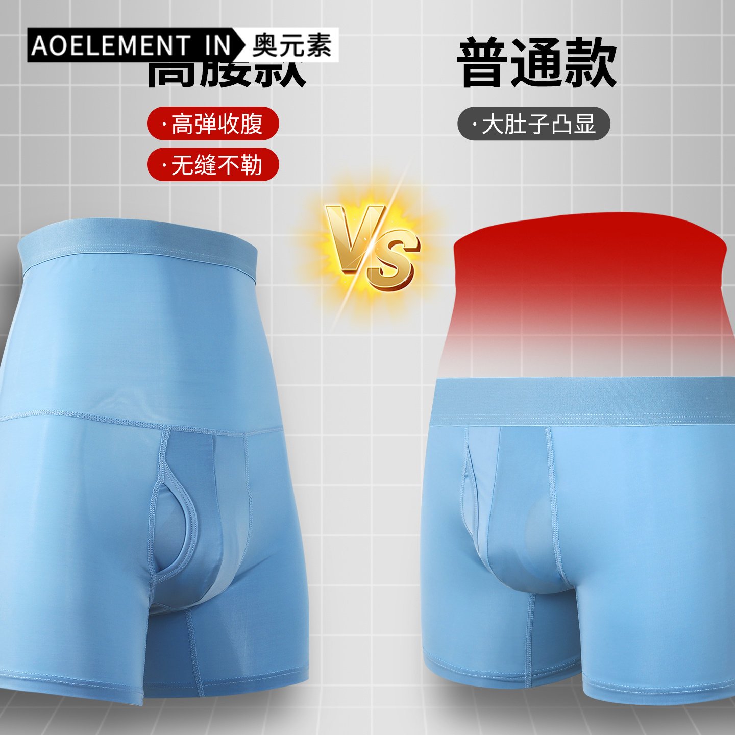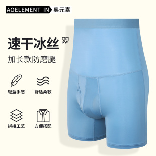 加长肥佬防磨腿护腰男生平角冰丝短裤 高腰收腹大码 头 运动内裤 男士