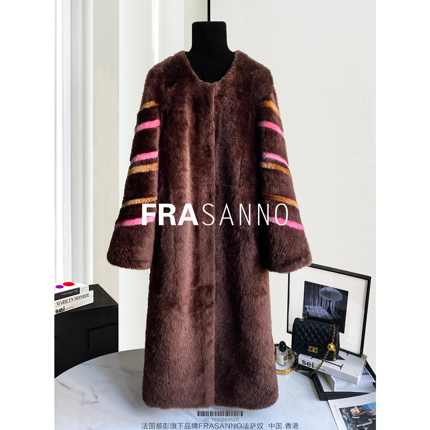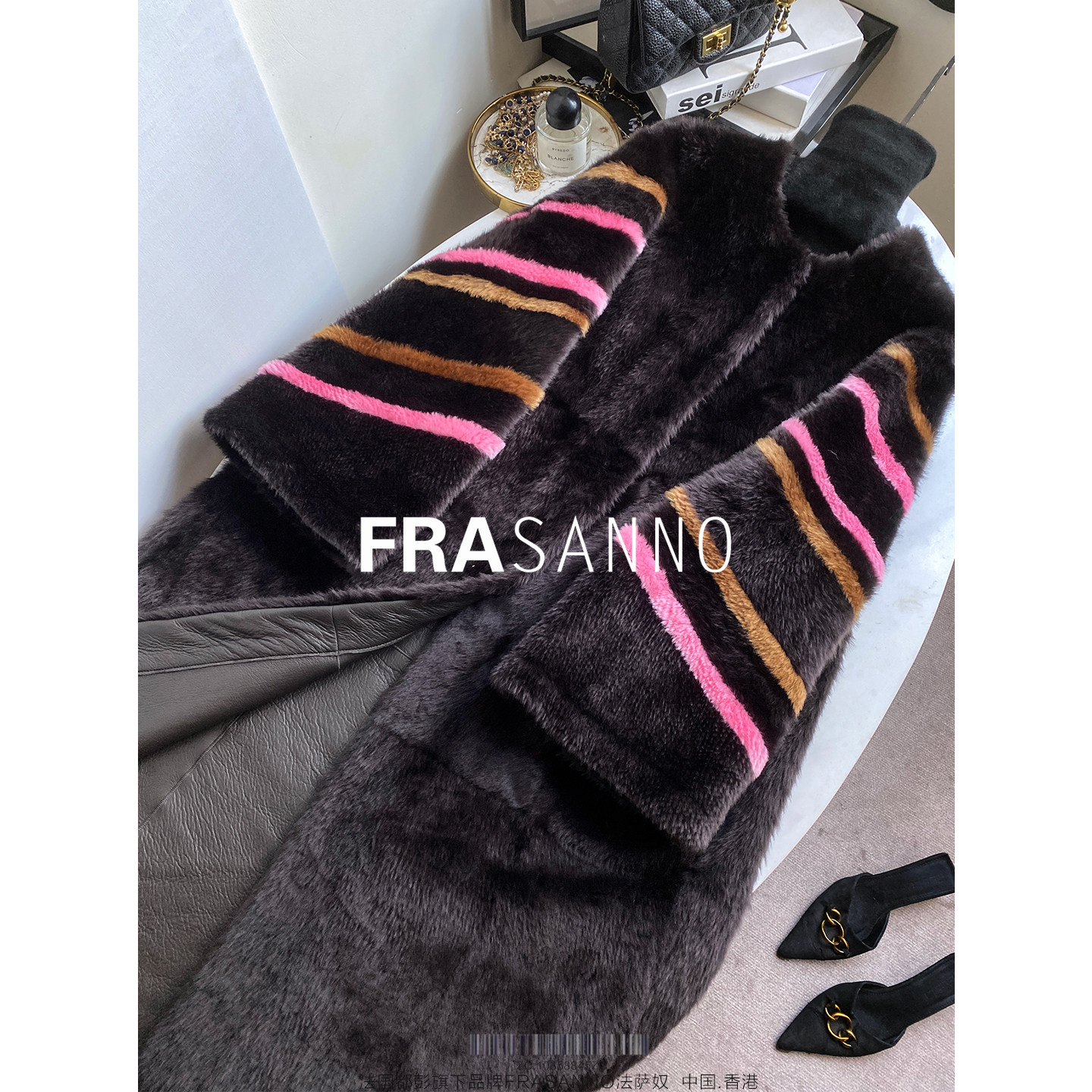 撞色宽松显瘦 西班牙拉贡皮毛一体女外套皮草时尚 FRASANNO 添彩