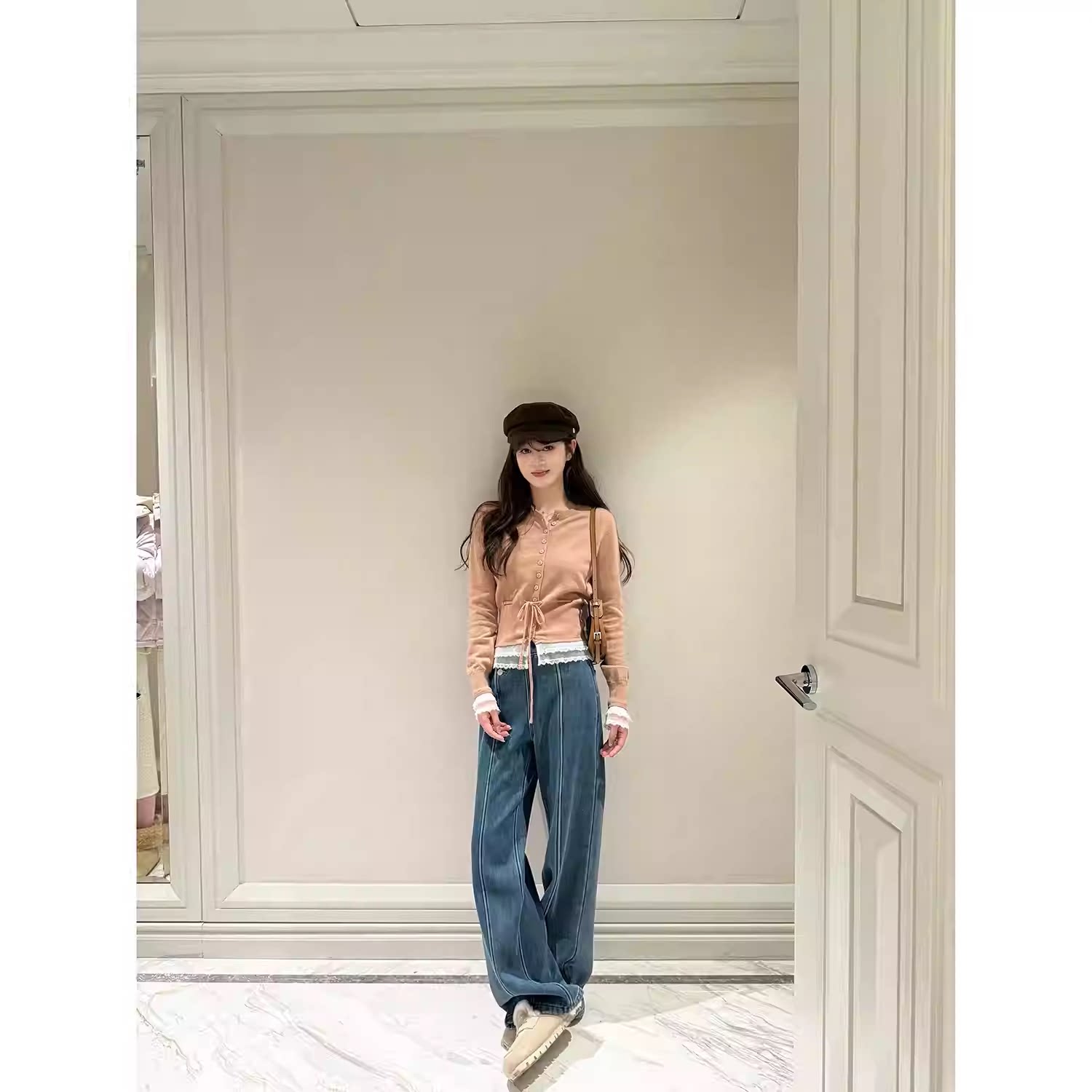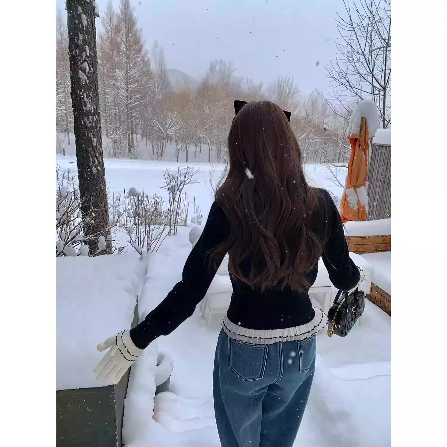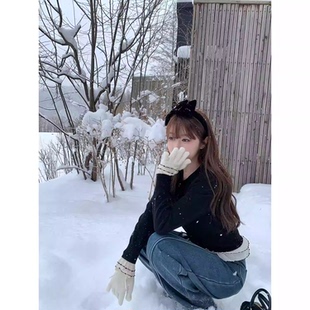 兔绒羊毛针织衫 立减 25秋冬折扣 女秋冬蕾丝拼接套头毛衣 AHY