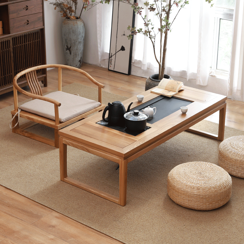 老榆木日式 实木榻榻米茶几客厅小桌子原木矮桌简约禅意茶桌椅组合