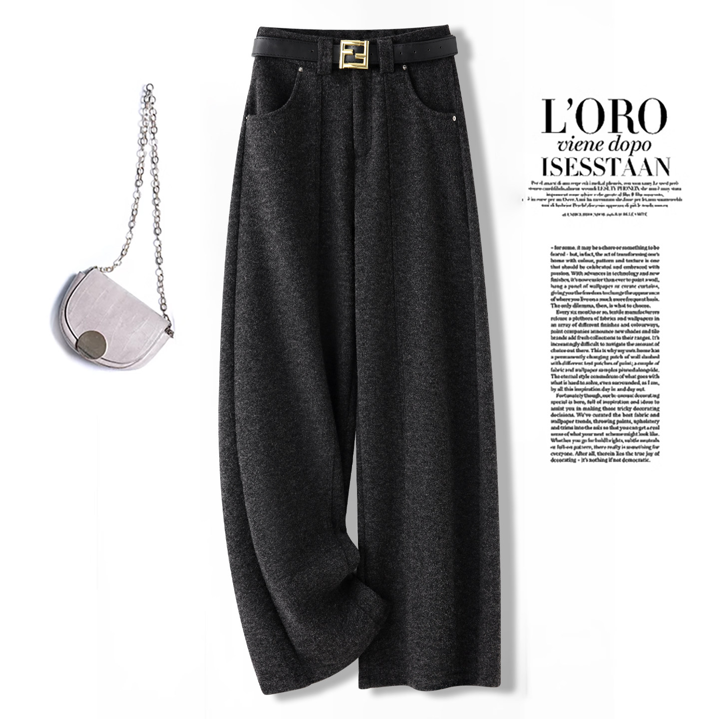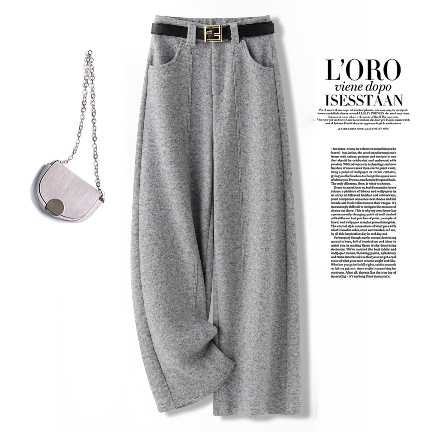 羊绒垂坠感宽松休闲弯刀裤 女秋冬2025爆款 子 阔腿裤 羊毛呢加厚窄版
