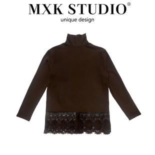 设计感宽松上衣 T恤女秋冬内搭韩版 2025新款 miu系蕾丝下摆高领长袖