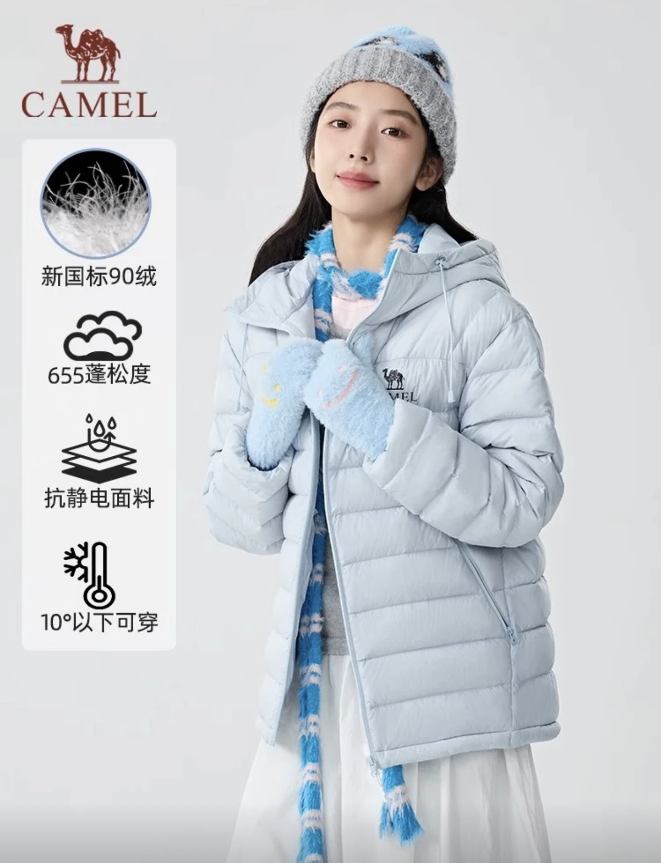 男女同款 羽绒服加厚2025冬新款 防风保暖连帽羽绒外套 短款 骆驼女装