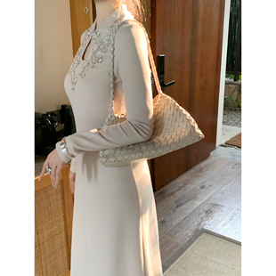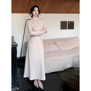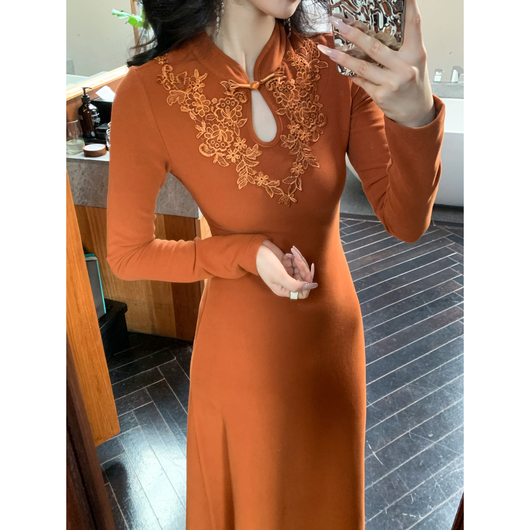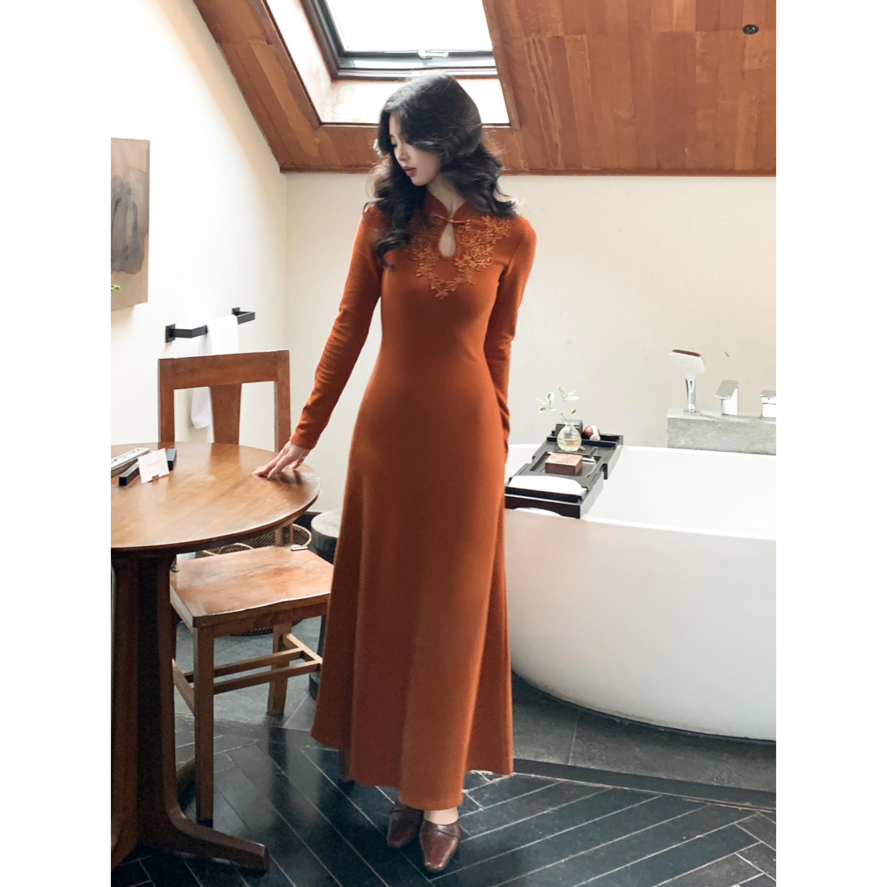 设计感连衣裙 微胖大码 安妮不火复古雪尼尔拼接长裙女2025冬季 新款