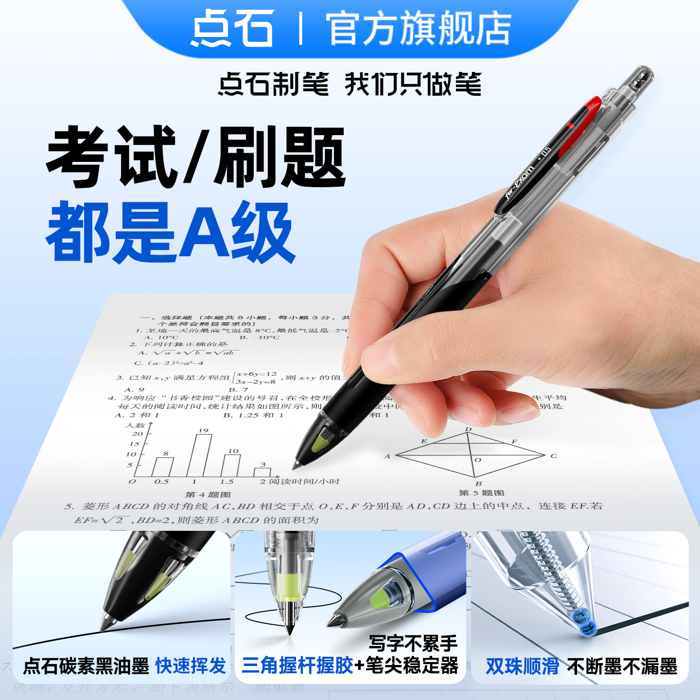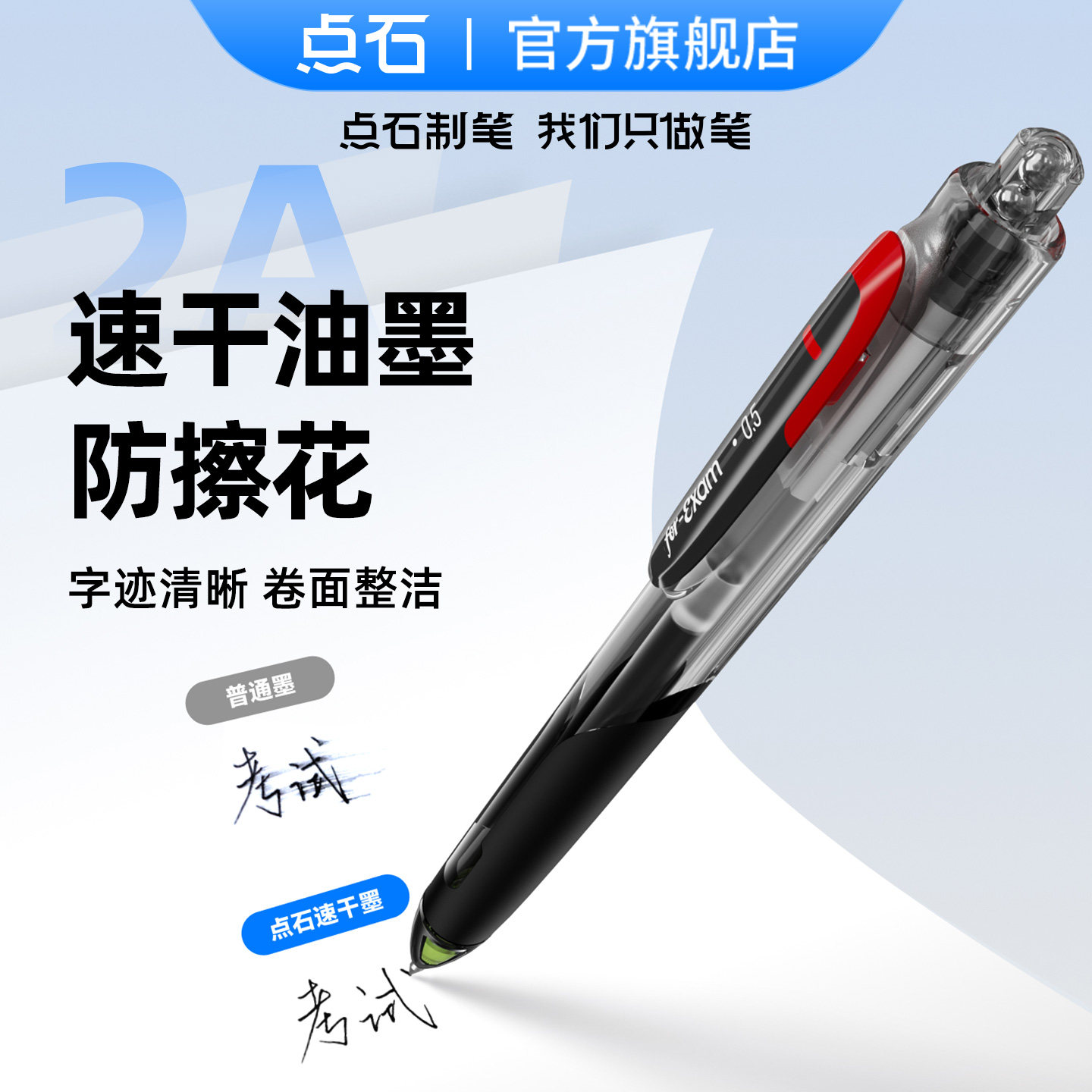 点石制笔正品 5A笔速干中性笔0.5黑色按动双珠顺滑子弹头签字文具圆珠笔中学生考试申论专用笔刷题笔碳素黑笔