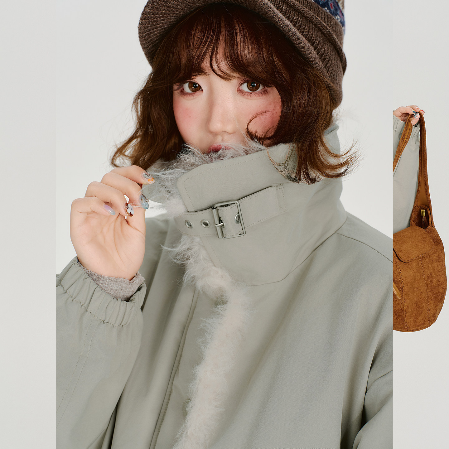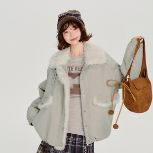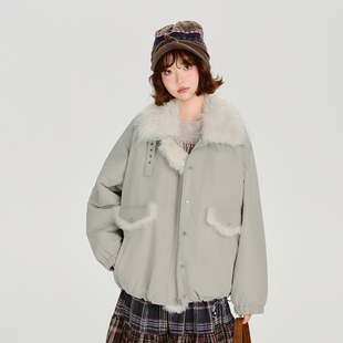 加厚保暖宽松棉服 新款 Girlyhalo美式 复古毛绒翻领夹克外套女冬季