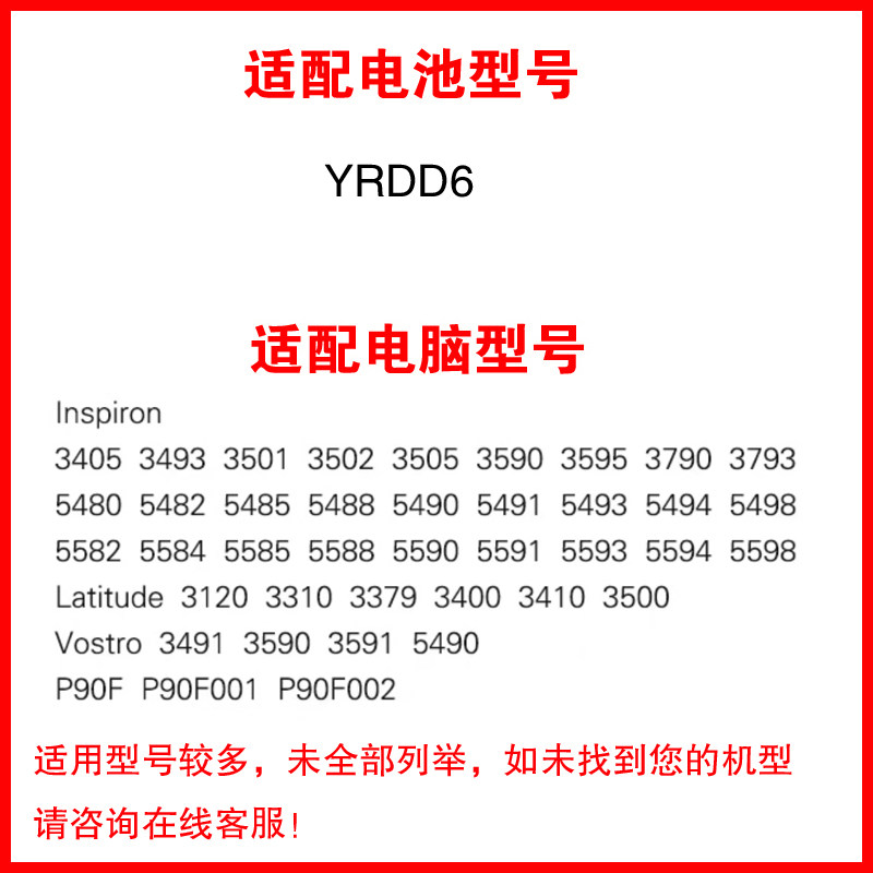 3405 3490 3500 适用戴尔Vostro 3582 3401 3501 YRDD6电池 3400