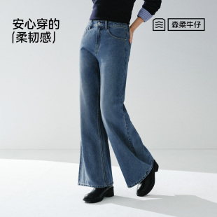 森马牛仔裤 显瘦港风微喇长裤 女春季 2026新款 做旧宽松喇叭裤 森柔