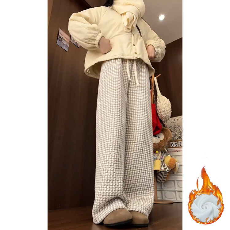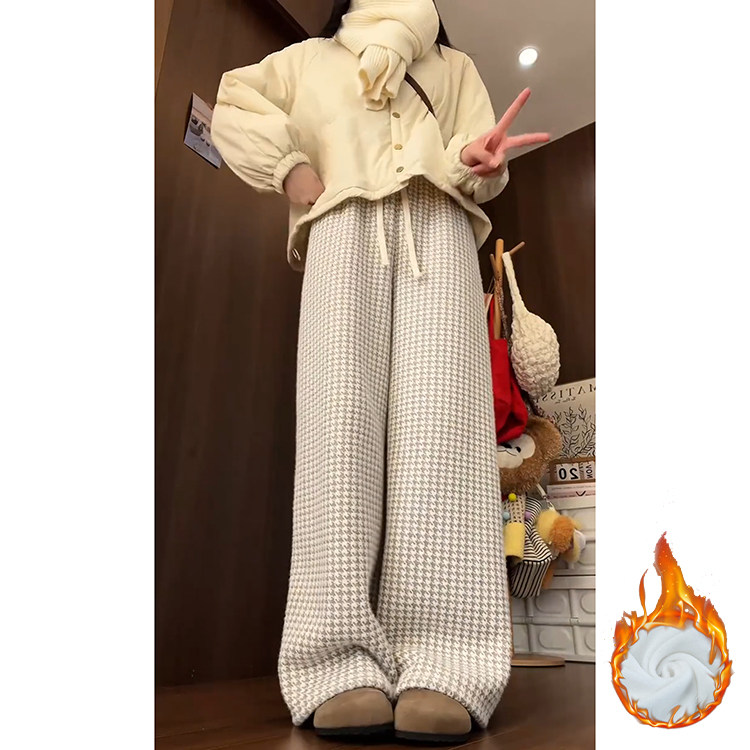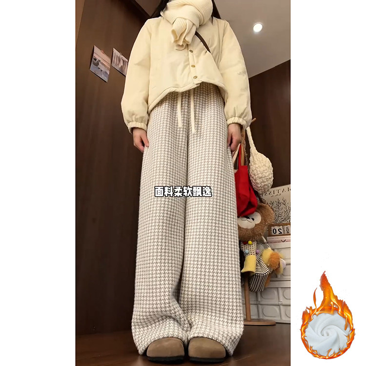 小香风减龄加厚拖地长裤 2025新款 女秋冬季 羊羔绒加绒千鸟格休闲裤