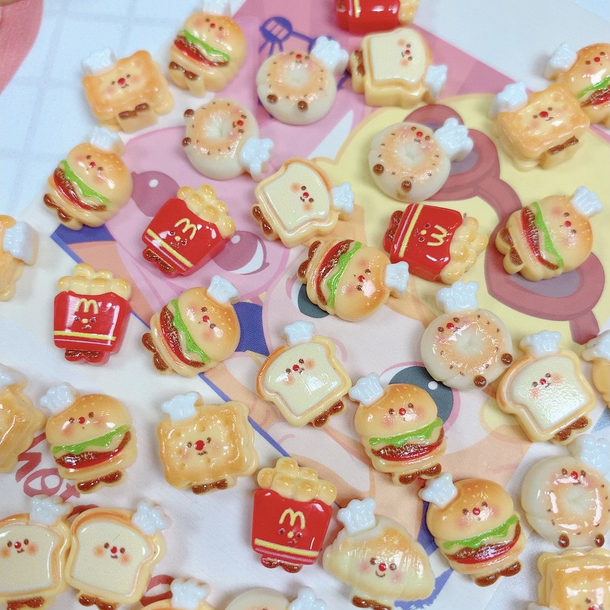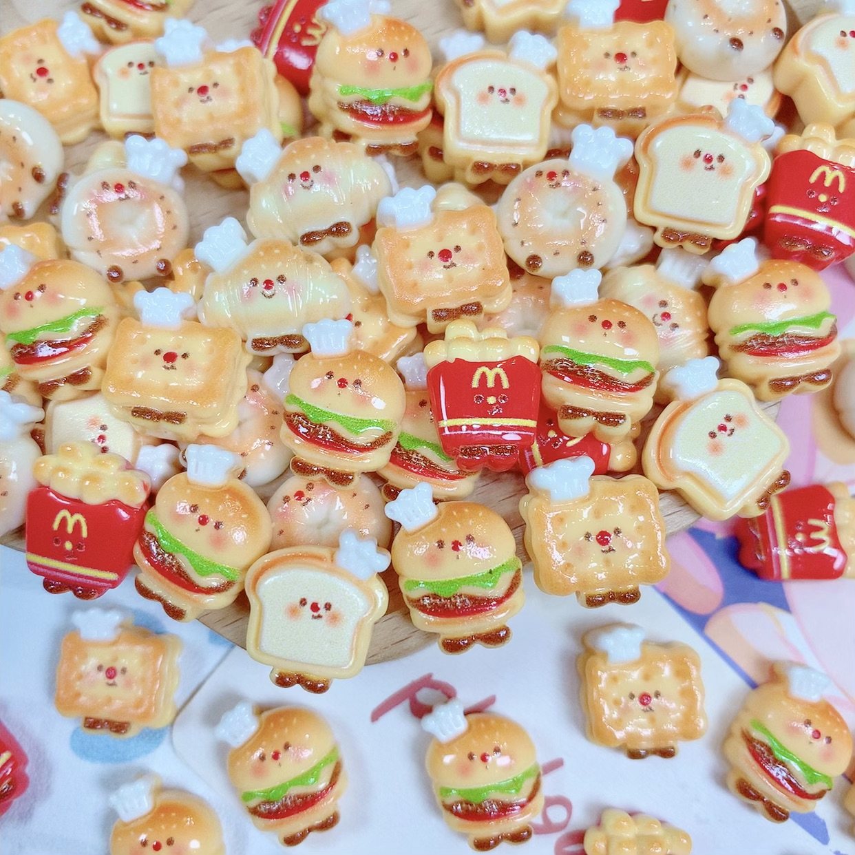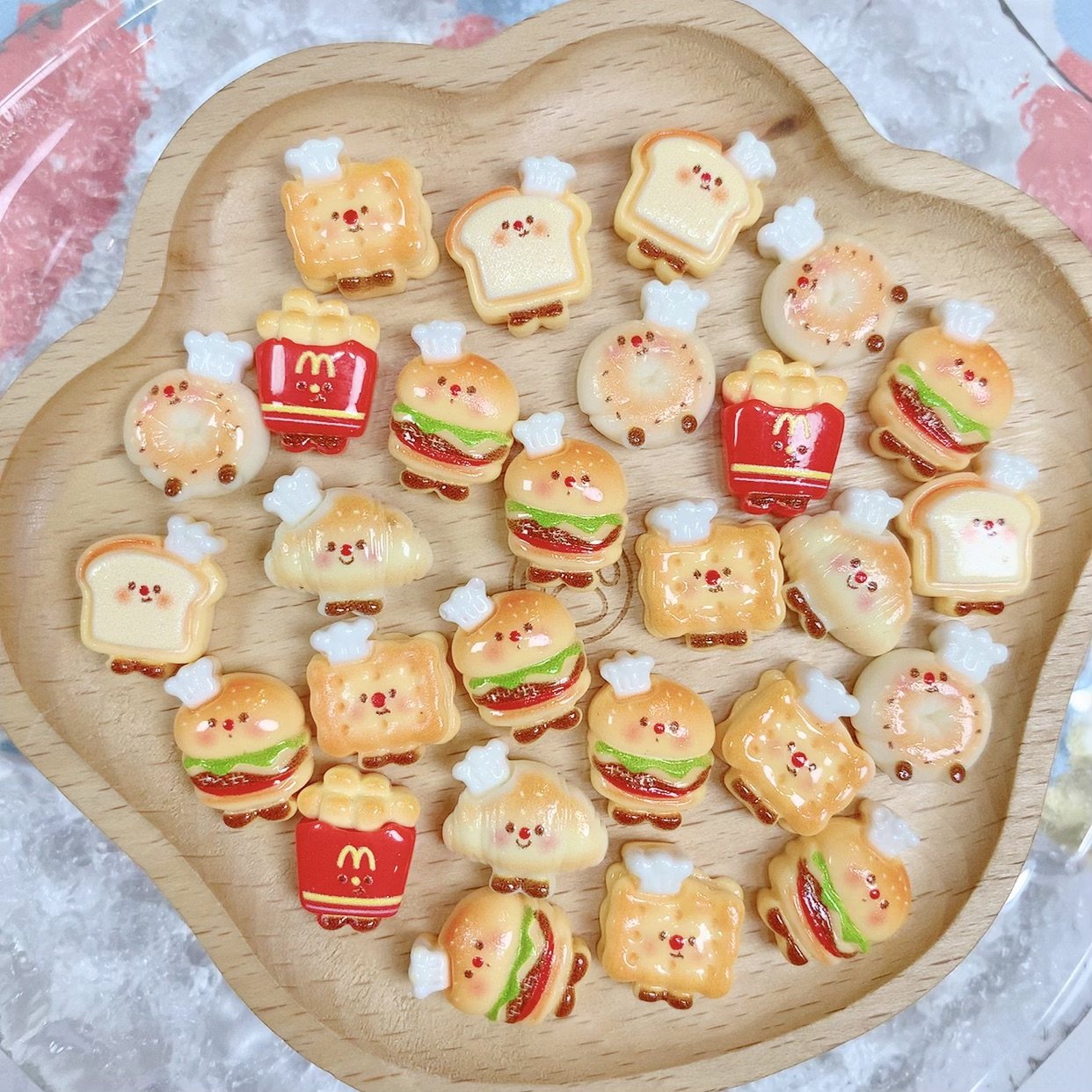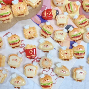 迷你卡通汉堡面包人 亮面树脂配件手工diy发夹奶油胶手机壳材料包