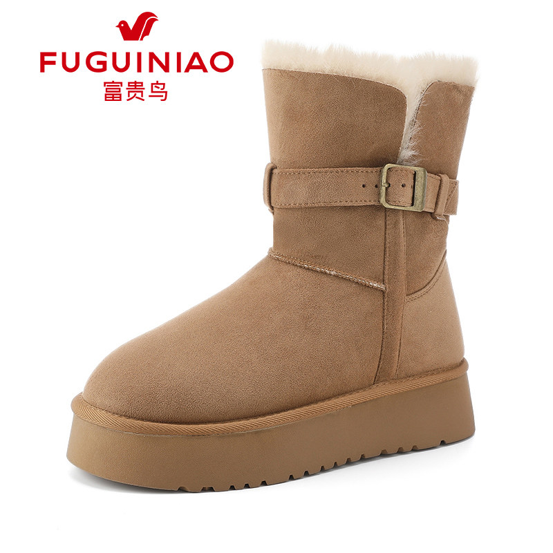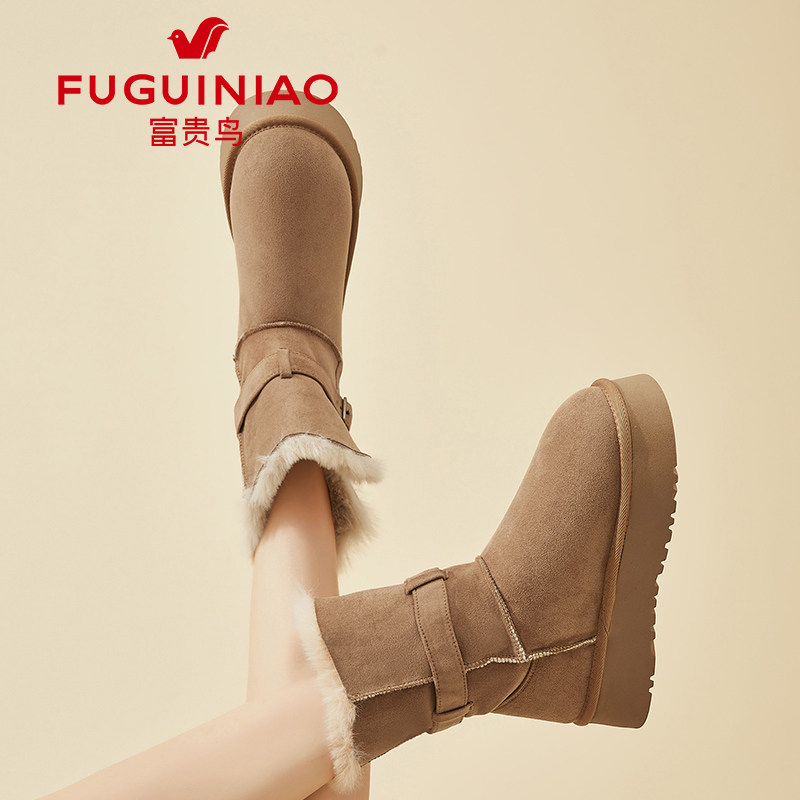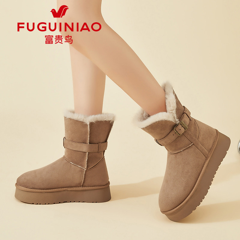 加绒保暖不进雪厚底雪乡大棉鞋 冬季 2026新款 富贵鸟中筒雪地靴女款
