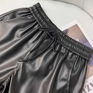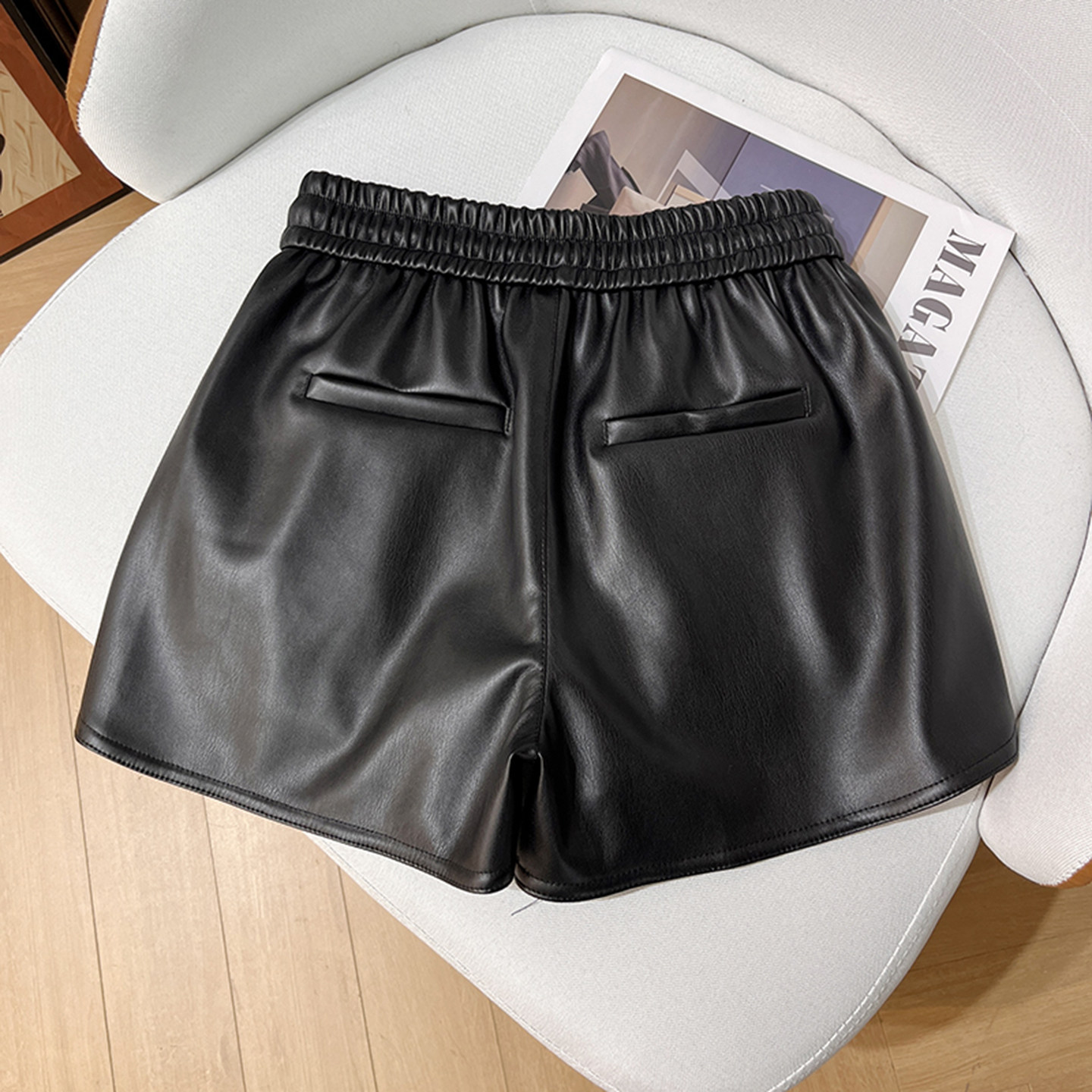 百搭抽绳高腰显瘦小个子阔腿A字皮短裤 时尚 女 2025秋冬新款 艾系