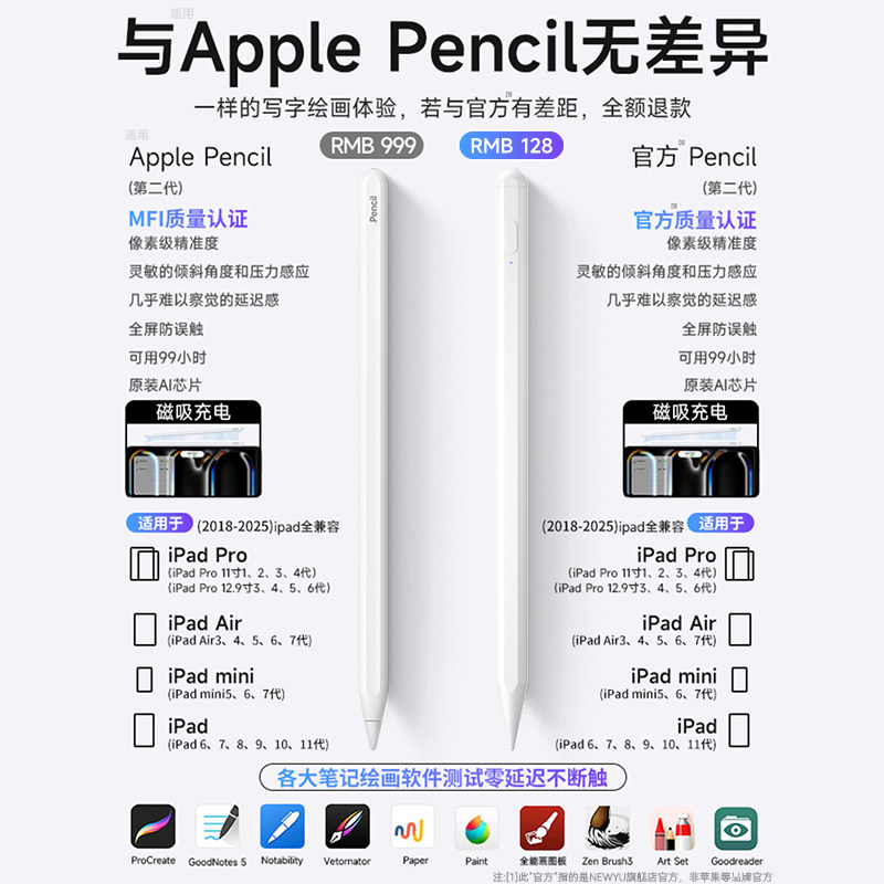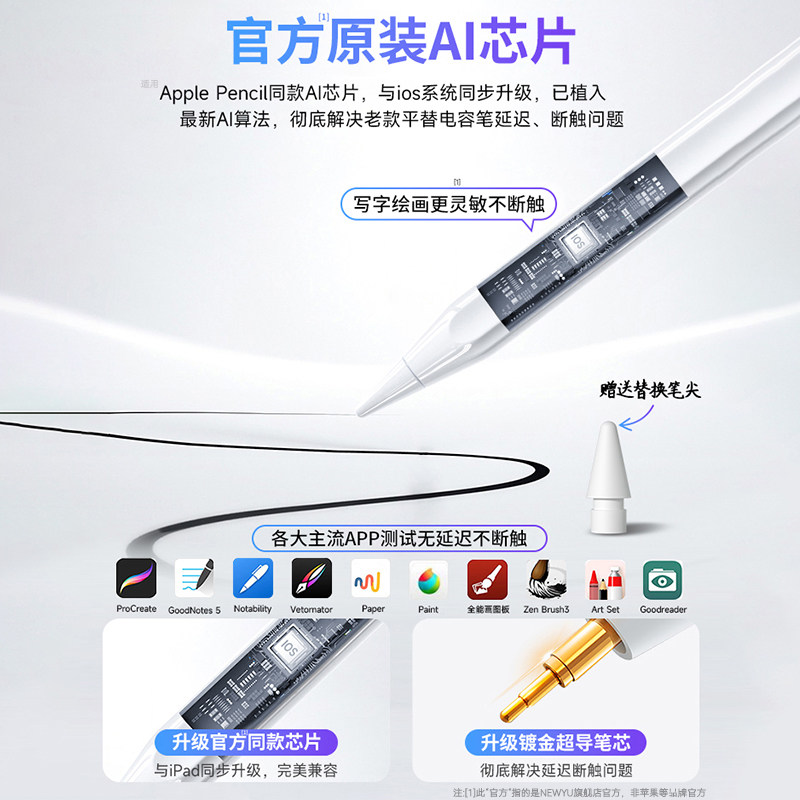 NEWYU适用applepencilpro苹果ipadpro2025电容笔官方三代air7触屏ipad11一触控2024平板电脑6手写10平替mini7