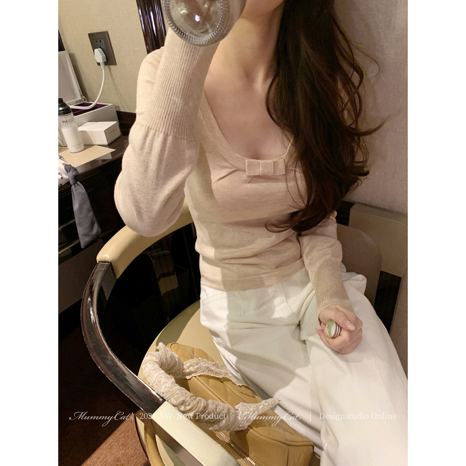秋冬蝴蝶结显瘦内搭针织衫 25新品 上衣 燕麦可可 MummyCat下蛋喵
