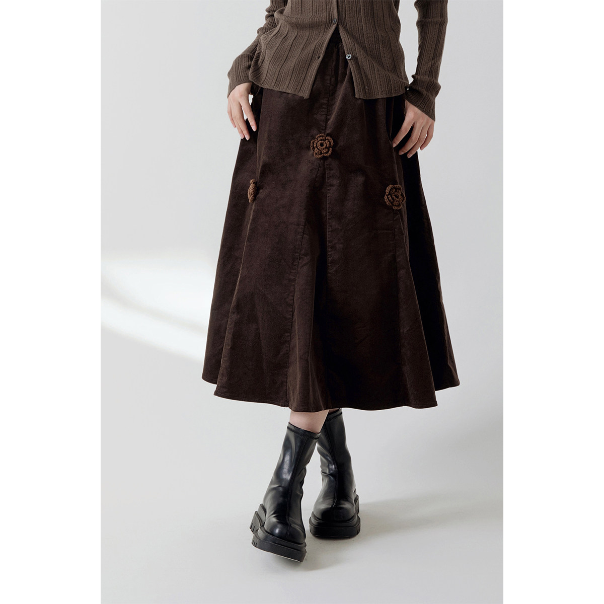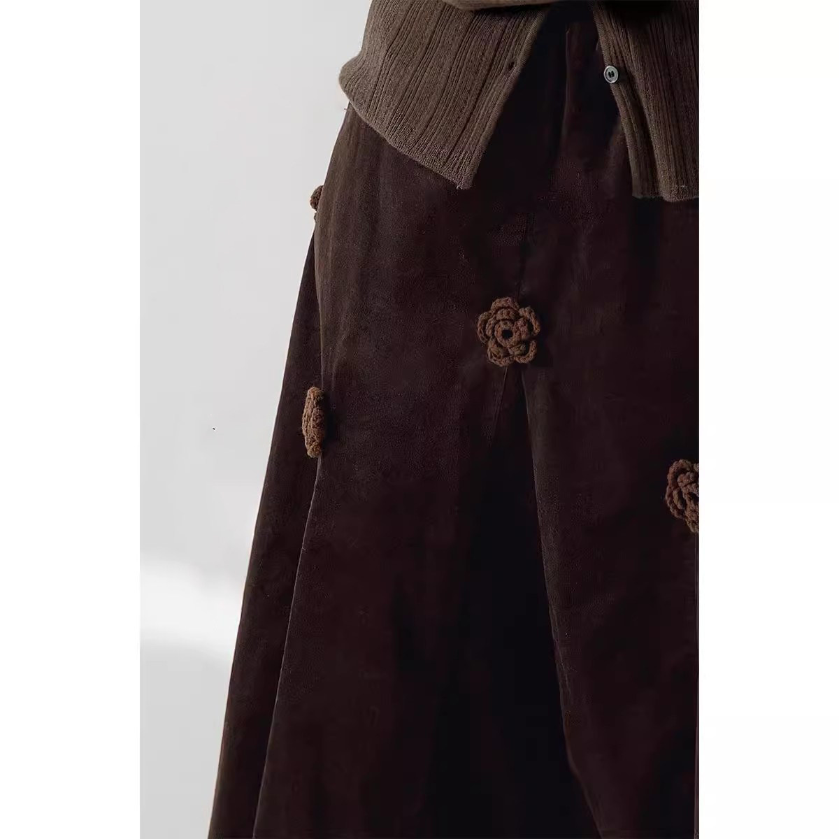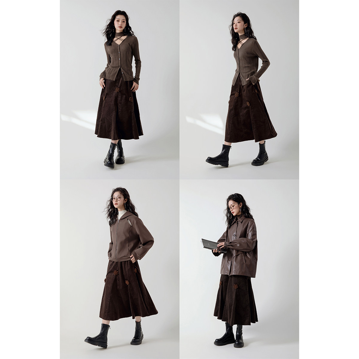 时髦叠穿短款 屁帘女秋冬季 针织半身裙 胖mm立体钩编绑带一片式 大码
