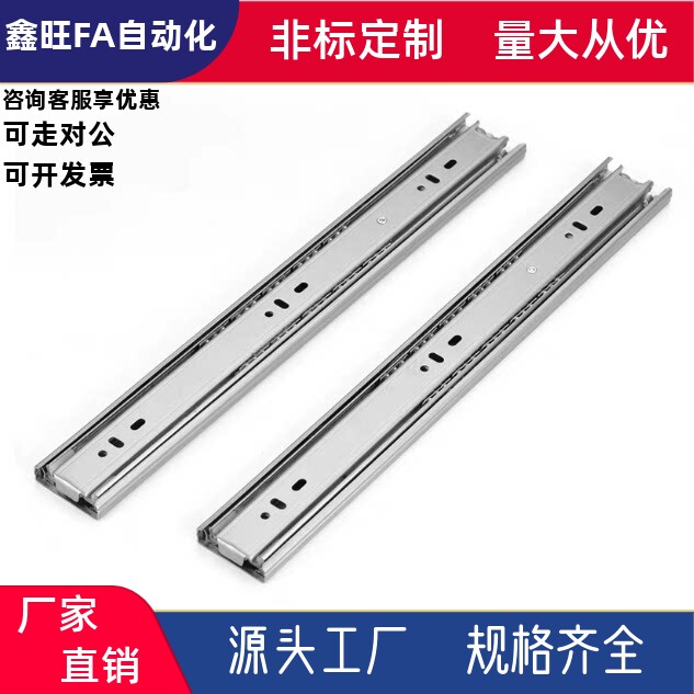 350 400 450 抽屉滑轨三节DRS 工业导轨黑钢 300 500 不锈钢 250