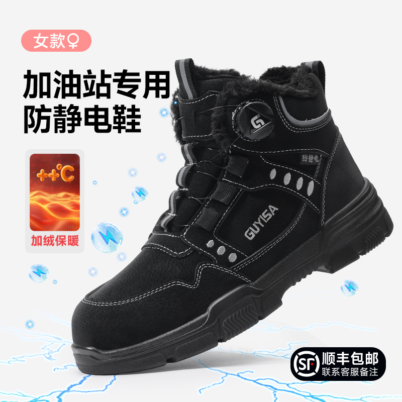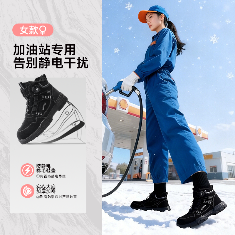 工地棉鞋 女士冬季 防砸防刺穿加绒加油站安全工作 男款 防静电劳保鞋