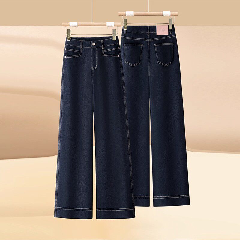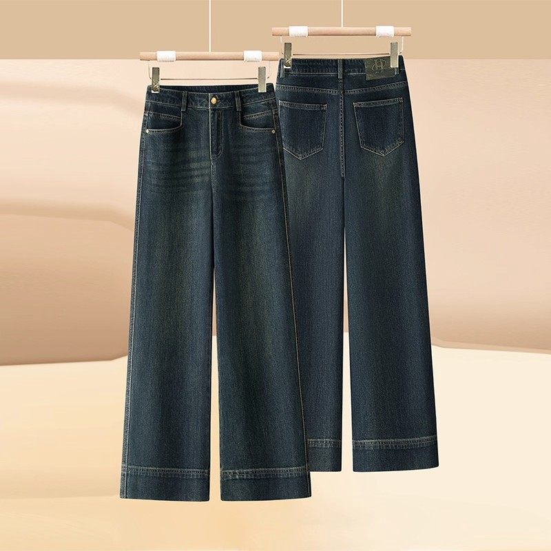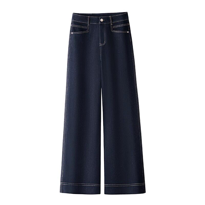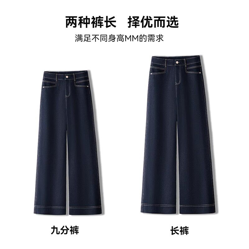 女冬季 加绒裤 2025新款 阔腿裤 子女 丹宁蓝窄版 特厚羊羔绒直筒牛仔裤