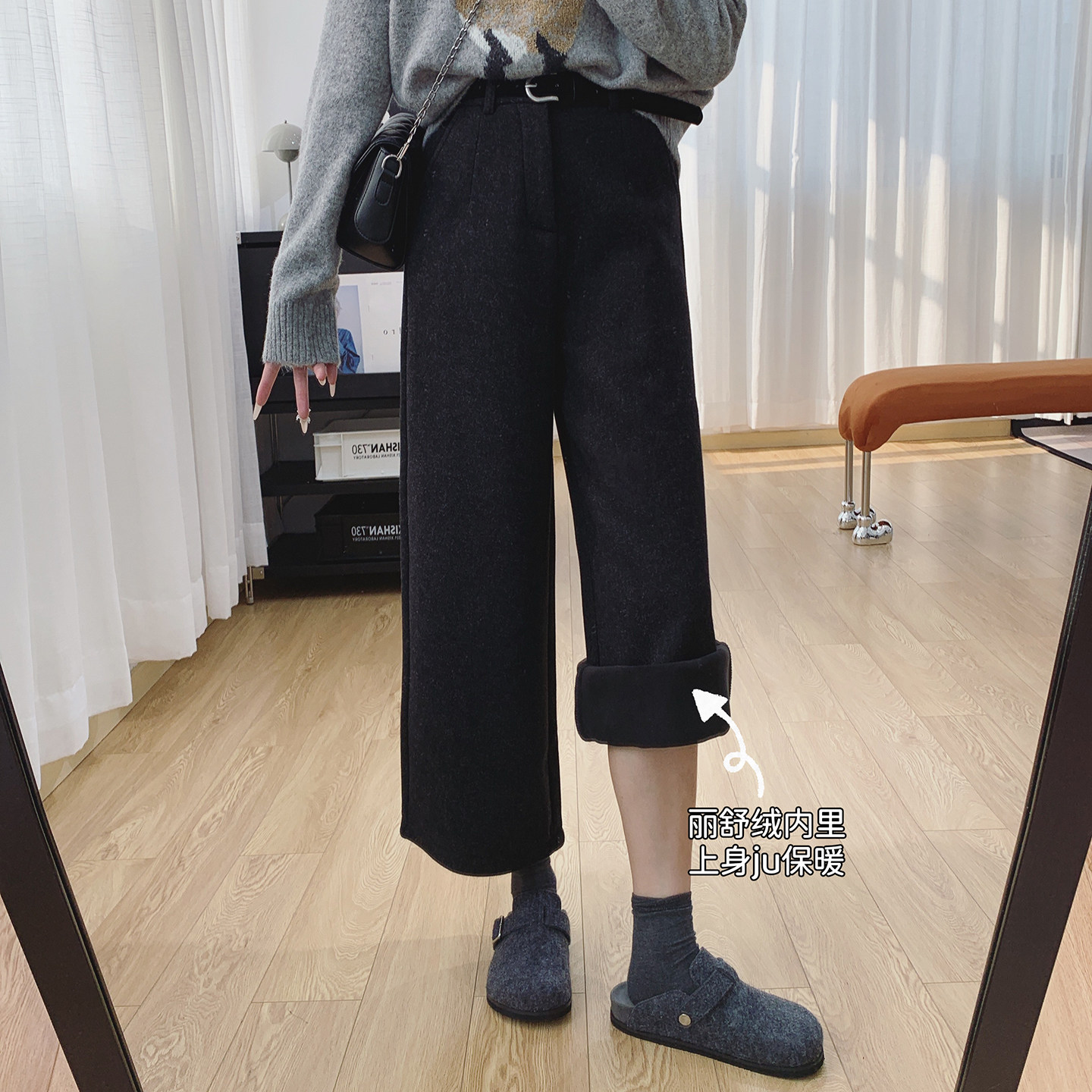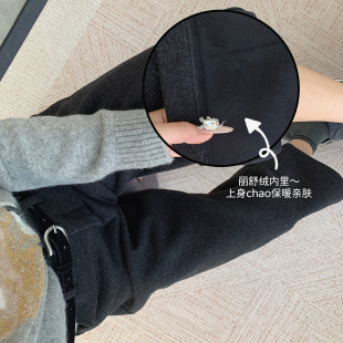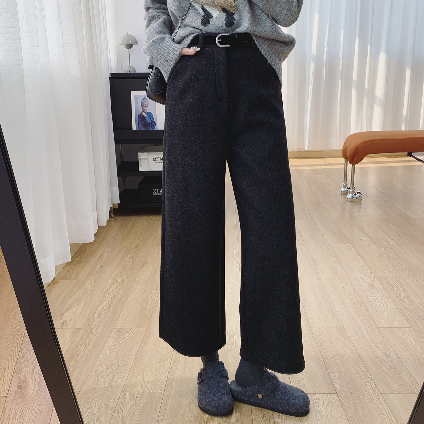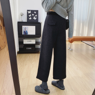 显瘦裤 清仓特价 休闲阔腿裤 女宽松直筒八分裤 子 高腰显瘦加绒毛呢裤