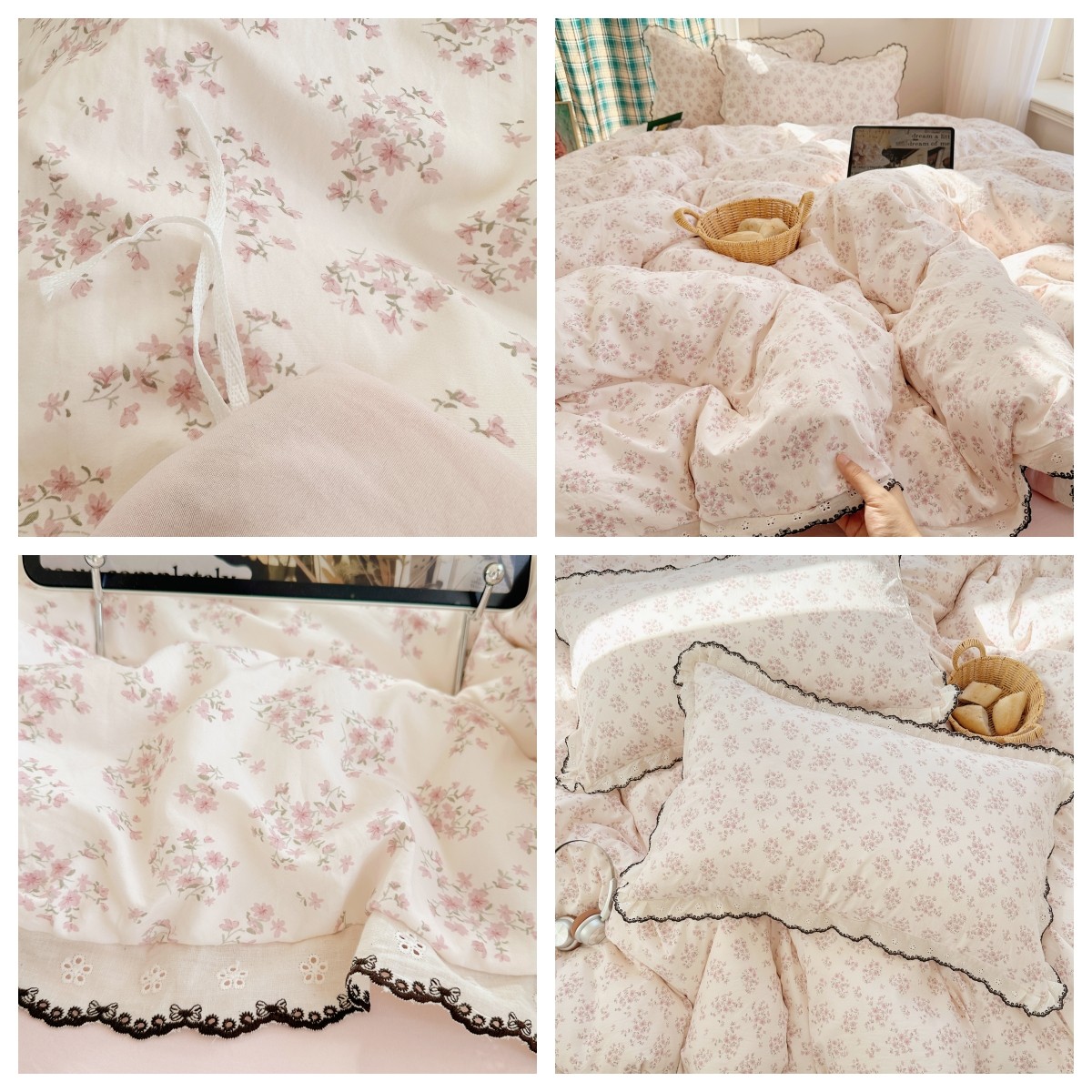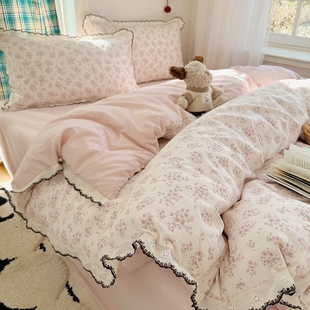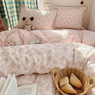A类四件套纯棉全棉小清新公主风床单被套床笠学生宿舍床上三件套4