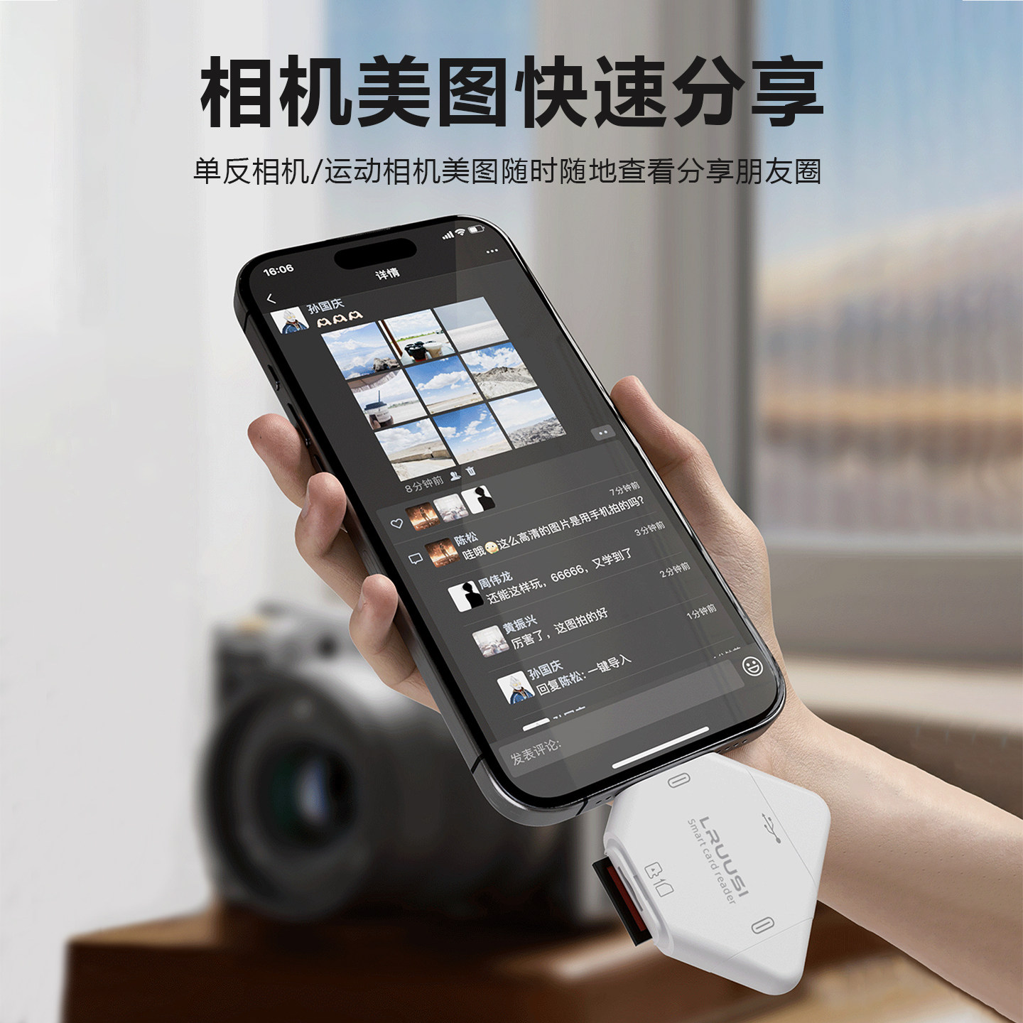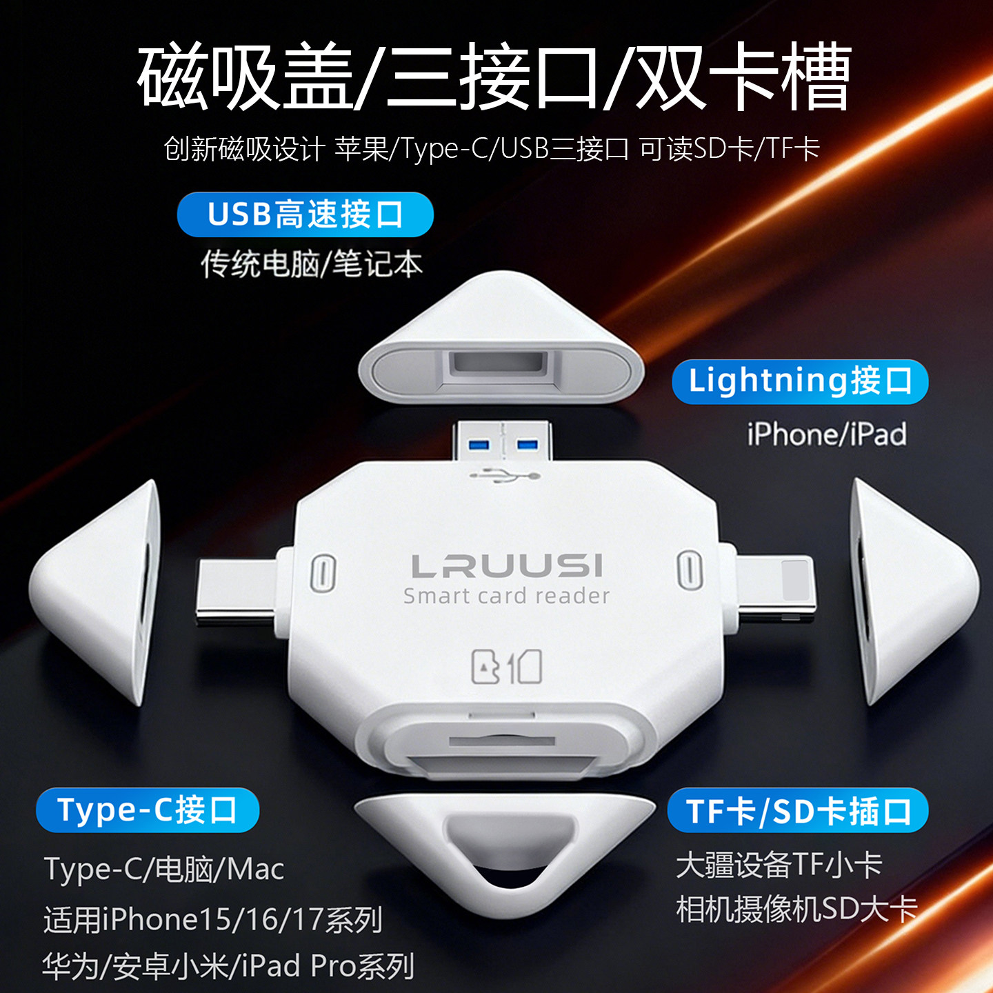 LRUUSI适用大疆Pocket3相机5读卡器苹果17五合一USB3.2高速读卡器佳能索尼微单摄影配件SD TF内存卡电脑iPad