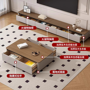 实木岩板茶几客厅家用落地储物柜小户型2025新款 茶几电视机柜组合
