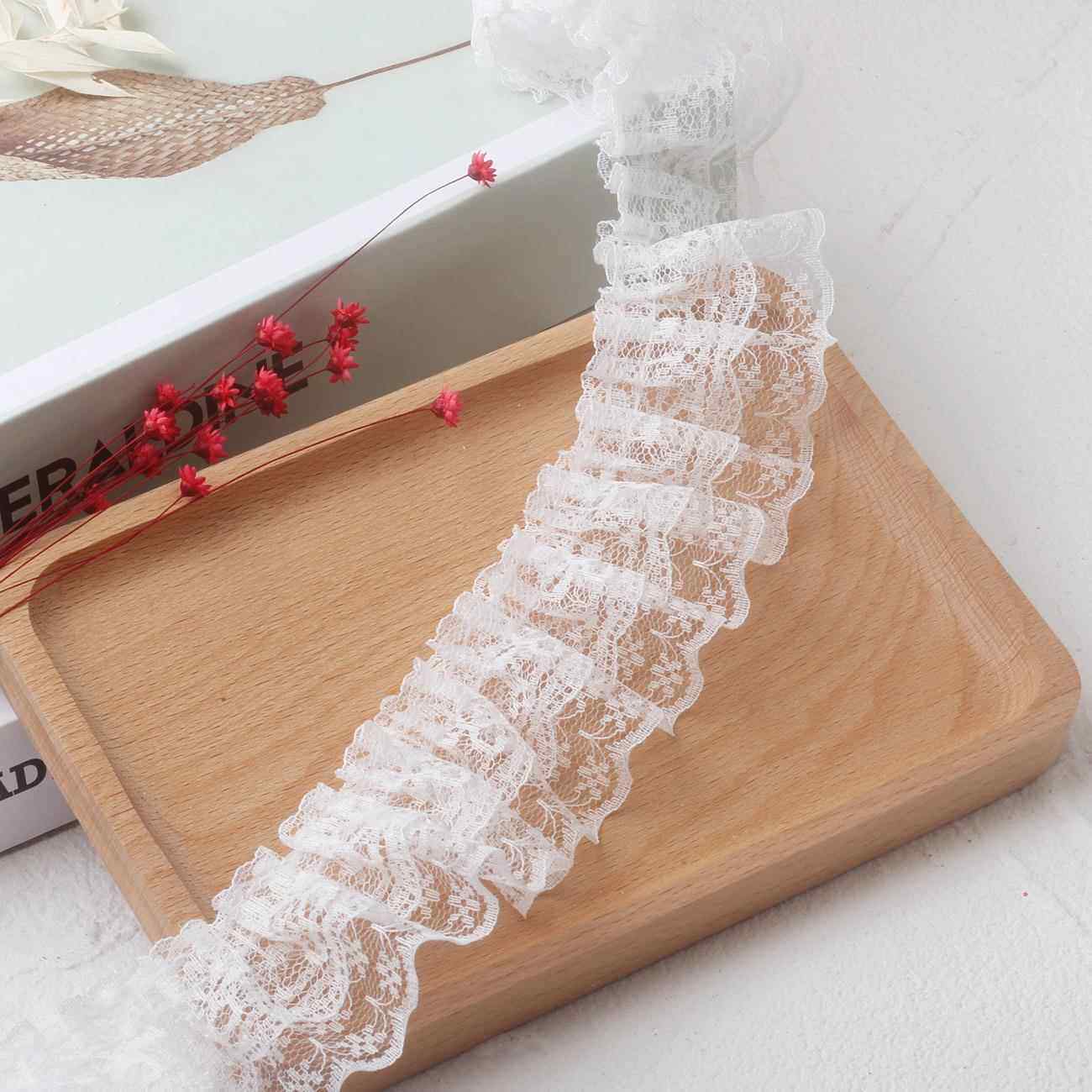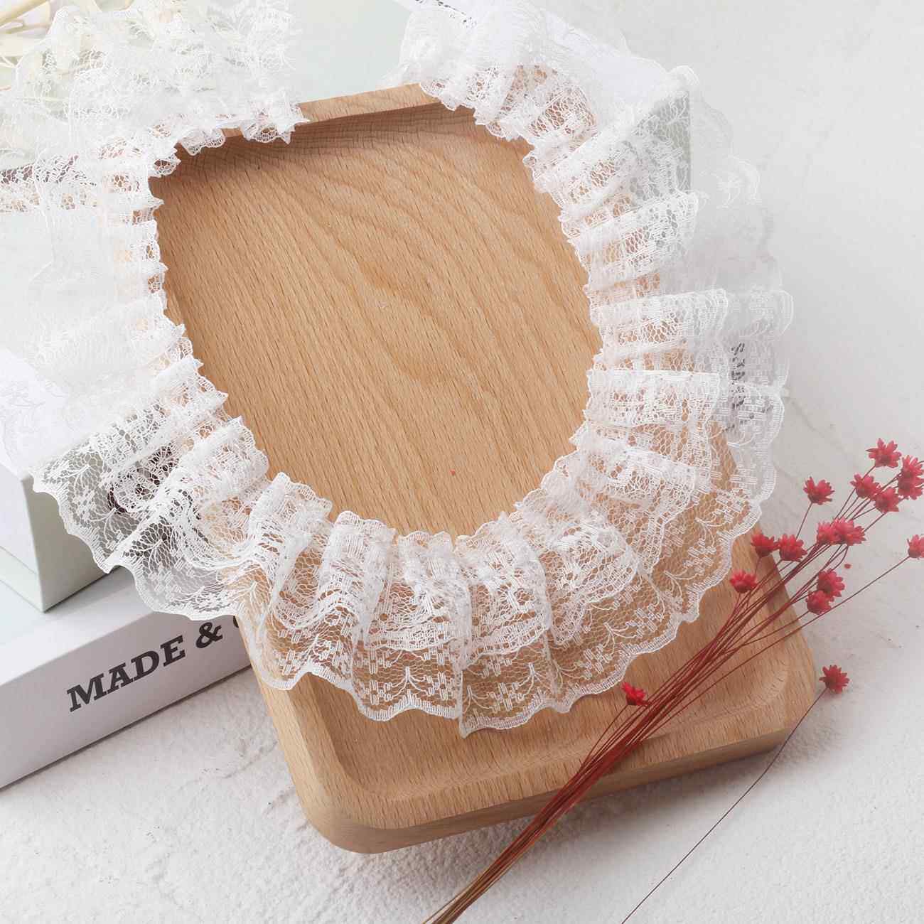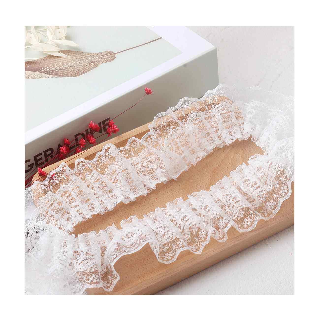 现货5cm双层蕾丝褶皱洛丽塔服装 口配件打折花边 玩具工艺裙摆袖