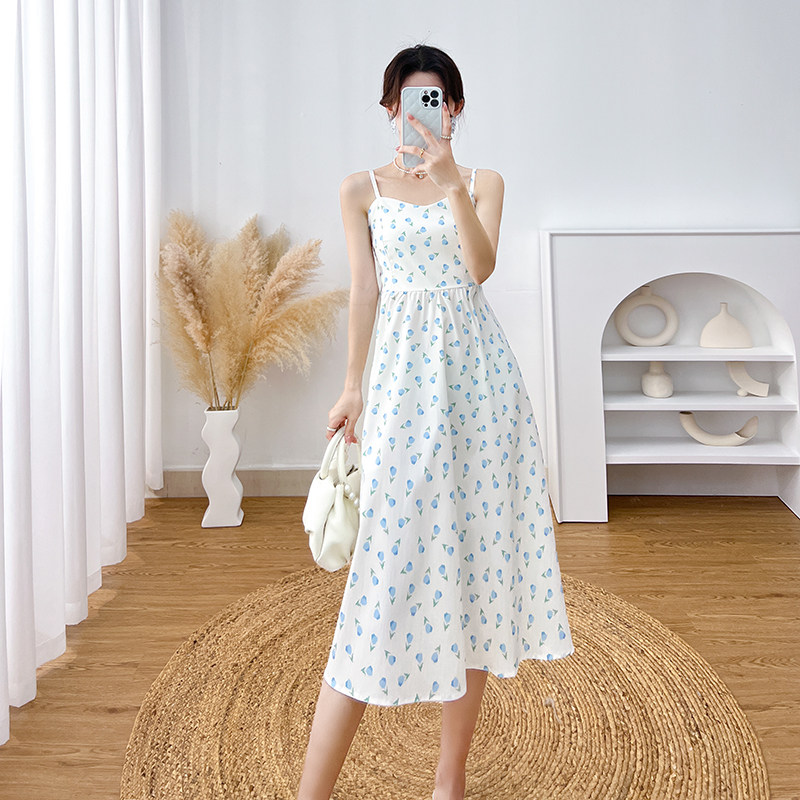 碎花收腰百搭显瘦产后喂奶吊带裙潮 中长款 哺乳连衣裙夏季 外出新款