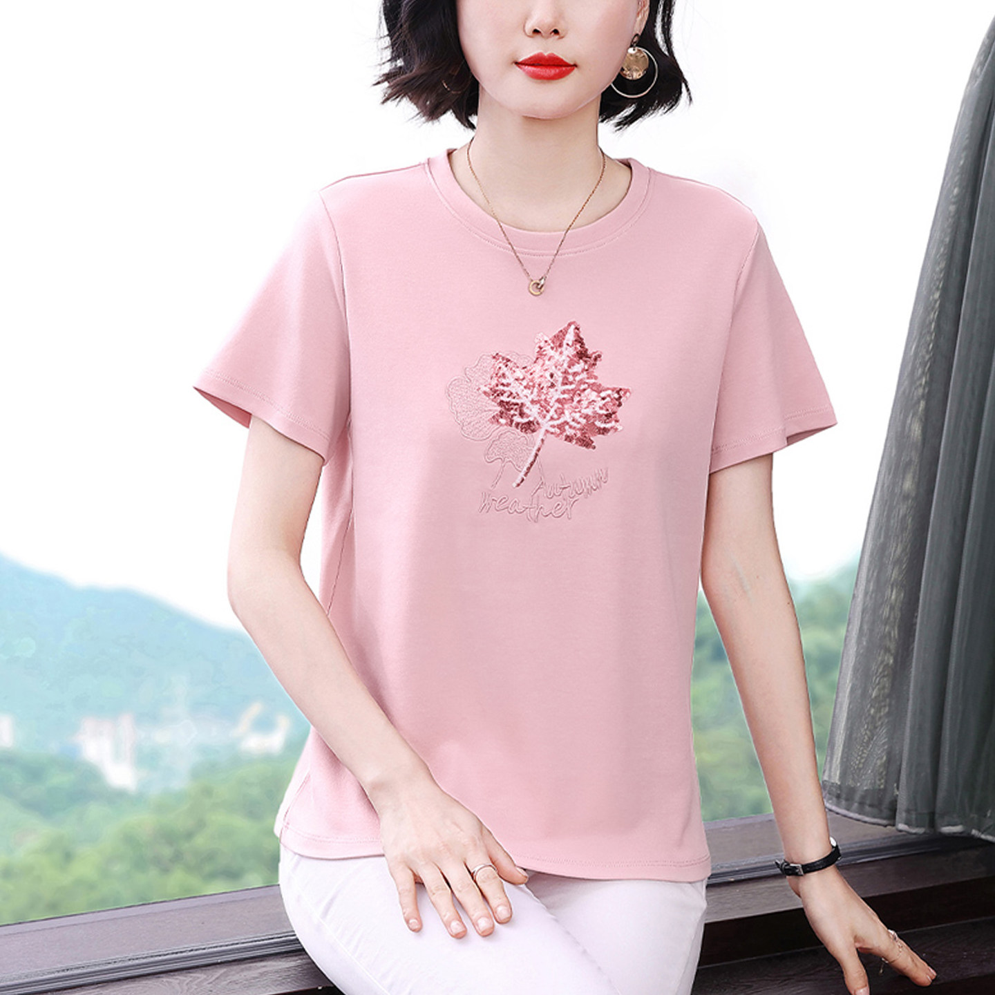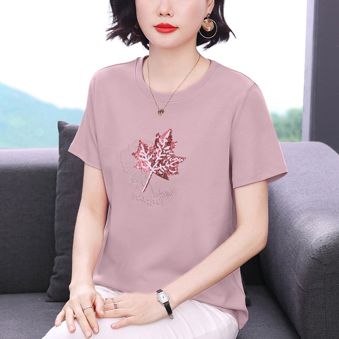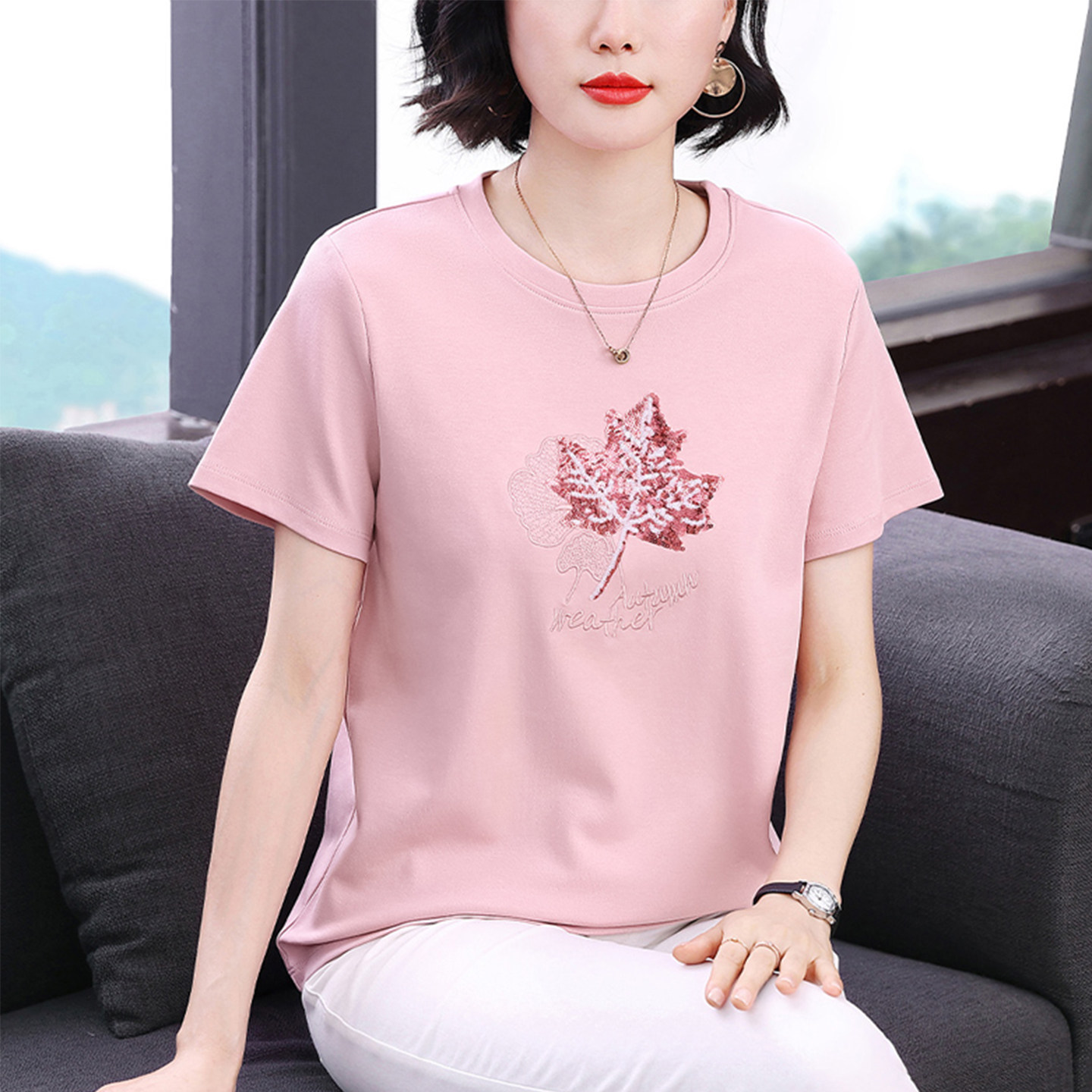 中年女士刺绣宽松半袖 妈妈纯棉短袖 夏季 女2026新款 洋气上衣 T恤衫