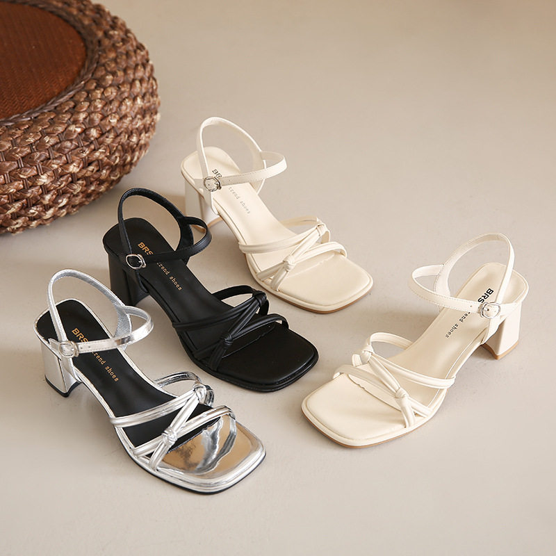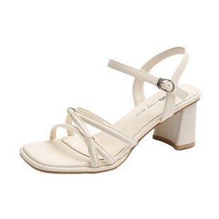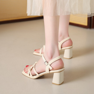 方头粗跟高跟鞋 夏季 搭裙子露趾高跟 潮不南平替2025年新款 韩国潮鞋