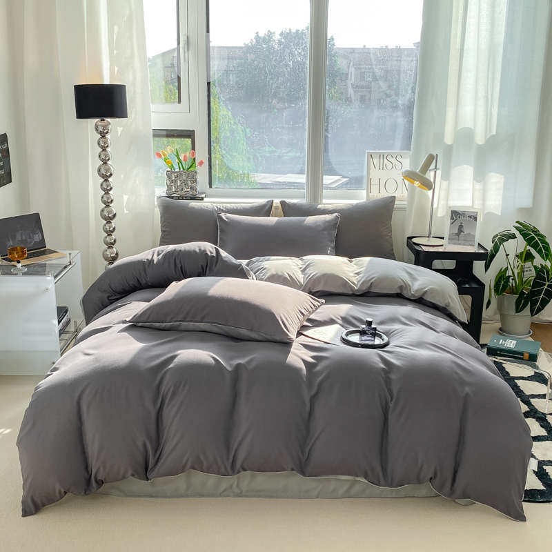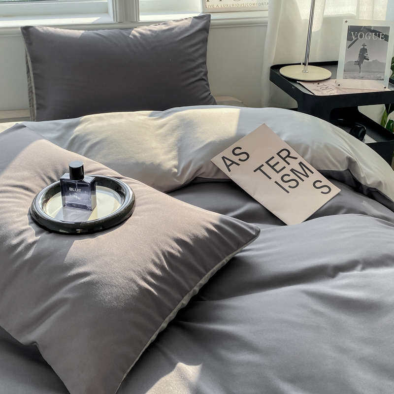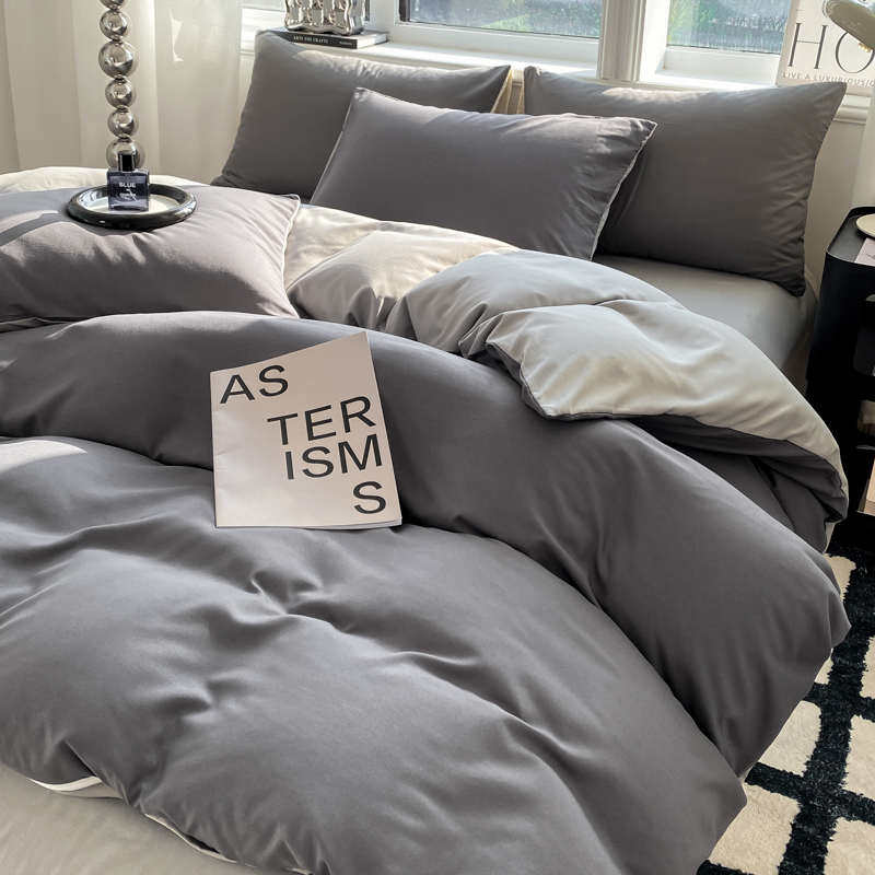ins风纯色加厚被套单件床单150x200x230非全棉纯棉床上用品简约4