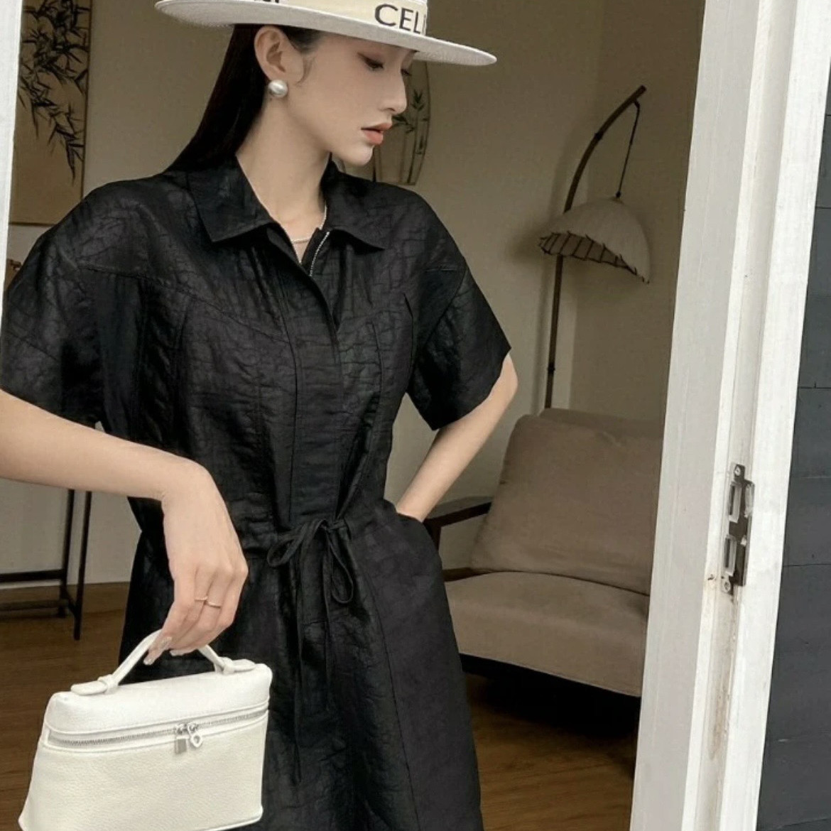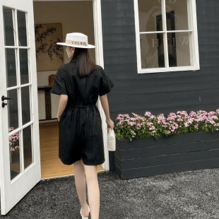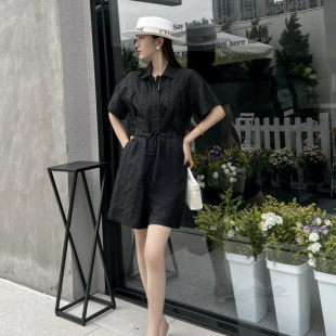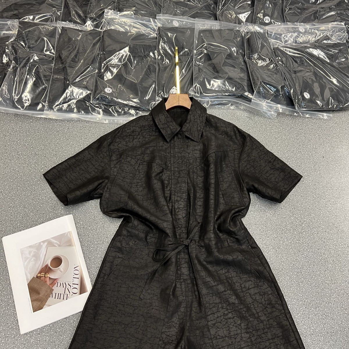 一起上新23姆米桑蚕丝龟裂纹香云纱松弛感抽绳短袖 77S701 连体裤