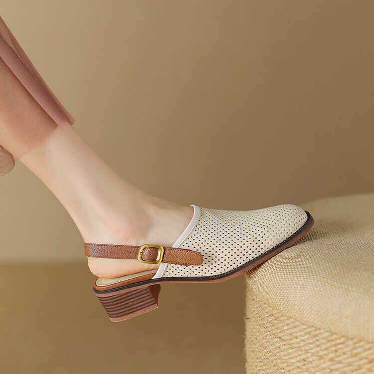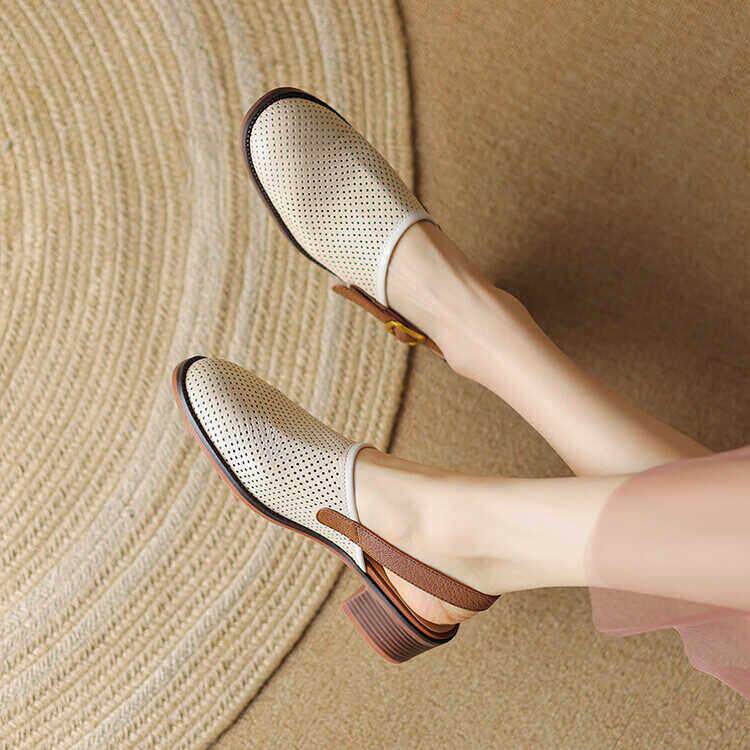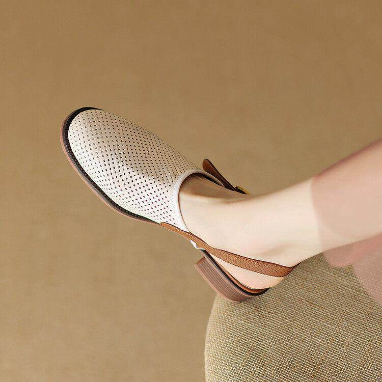 镂空粗跟包头凉鞋 中跟百搭罗马鞋 女2026季 女鞋 0325d 新款 夏款