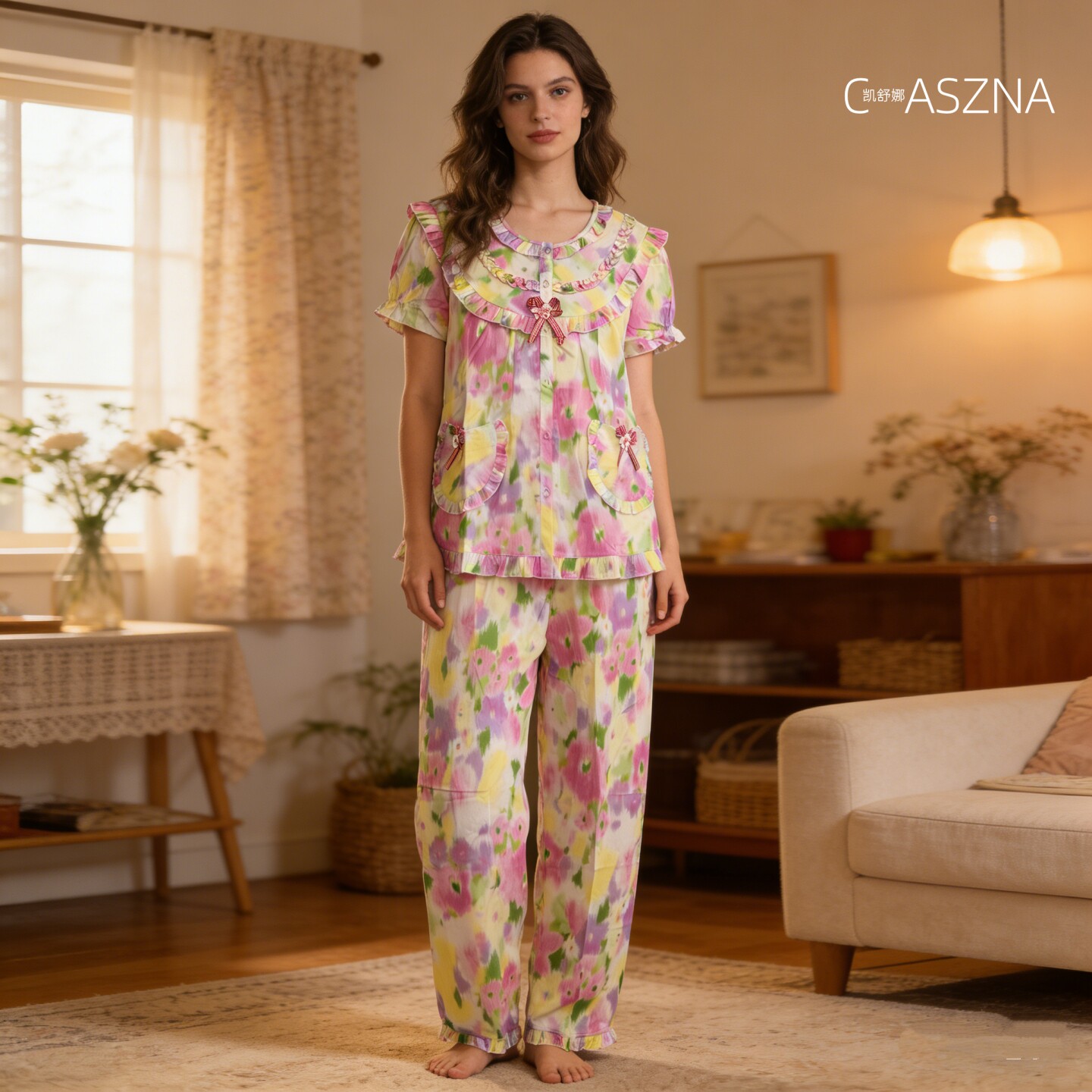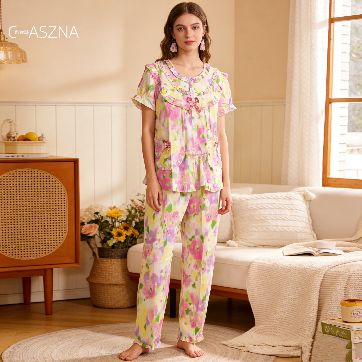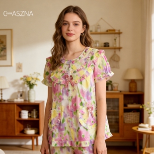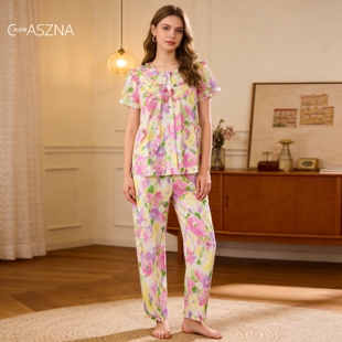 睡衣女夏款 长裤 亲肤全棉居家服两件套家居服 纯棉短袖 凯舒娜正品