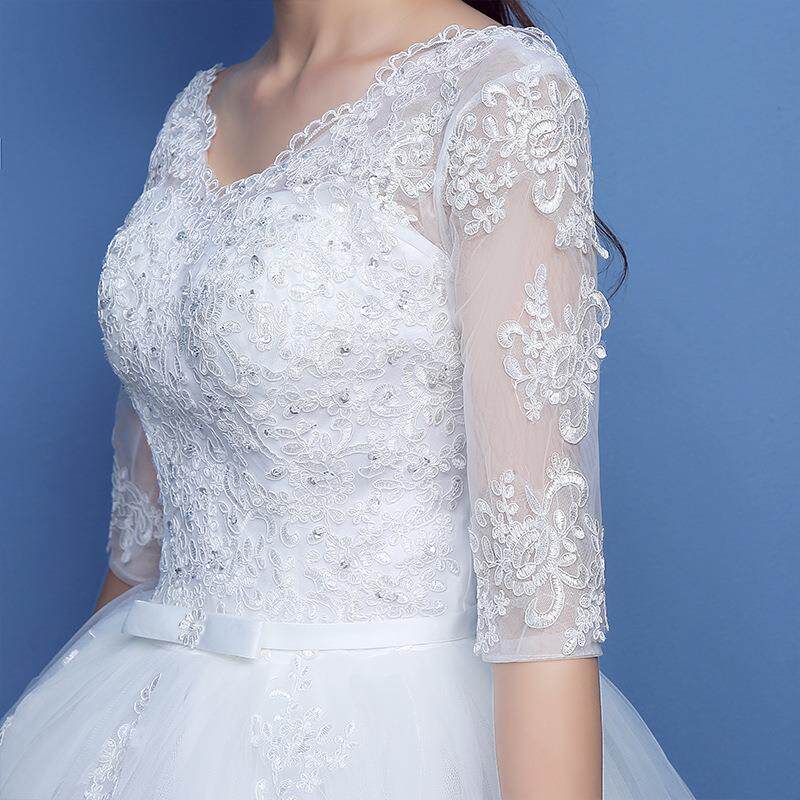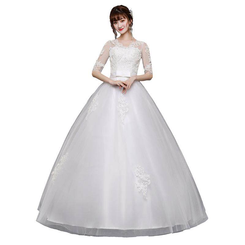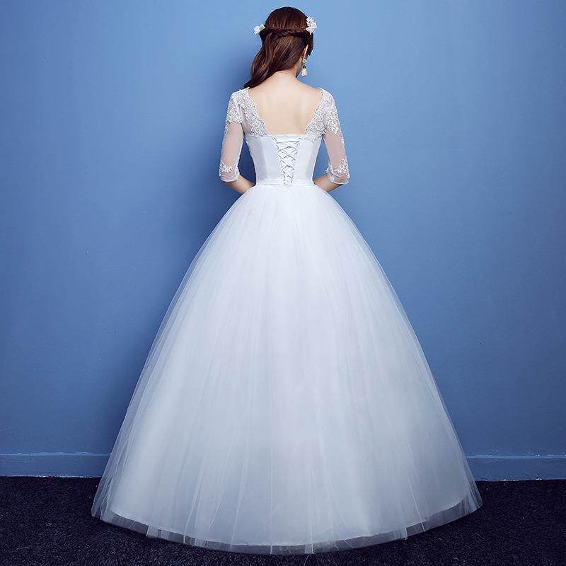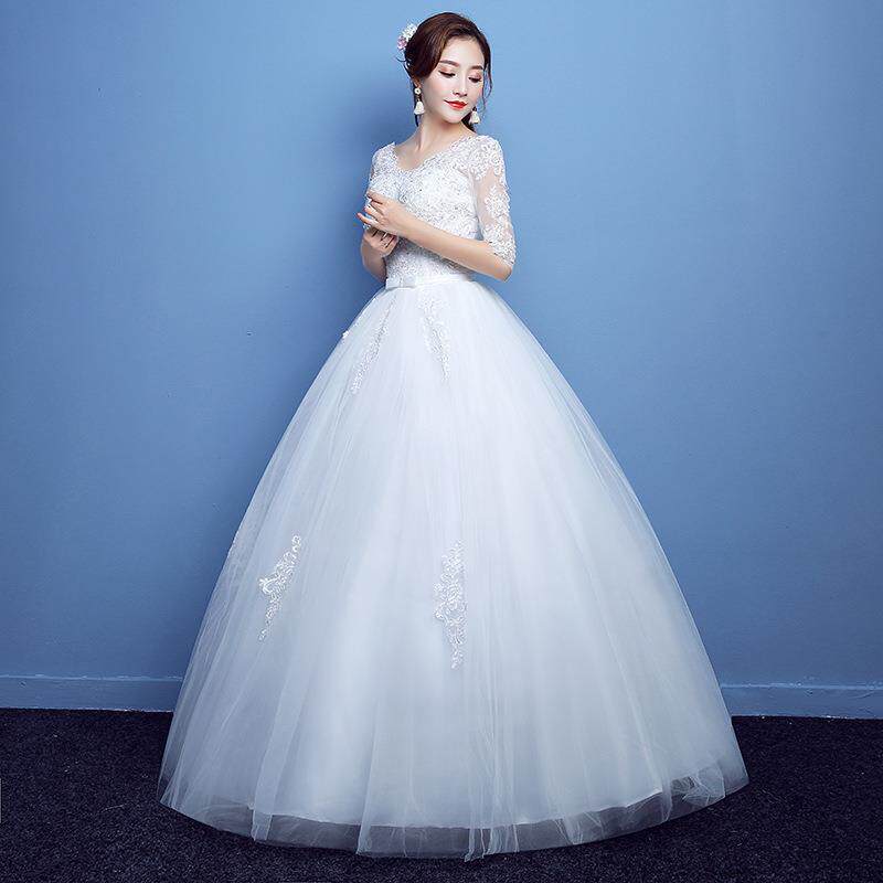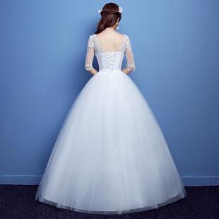 新娘结婚显瘦齐地双肩长袖 一字肩大码 肥B55 韩式 婚纱礼服2025新款